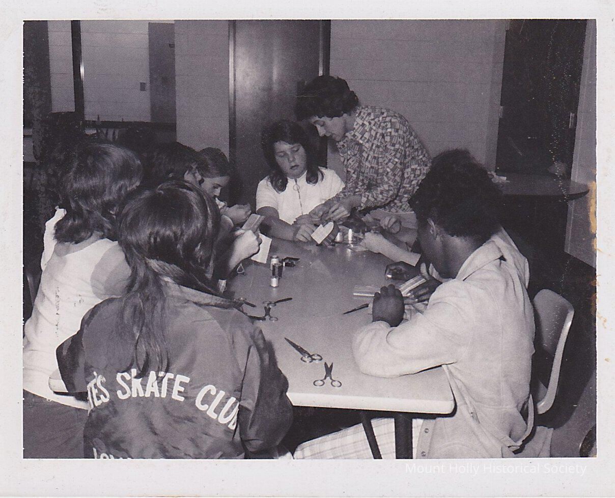 School Photos - Mrs. Cyrus Frazier teaches sewing to a group of intermediate girls - A Fine Stich