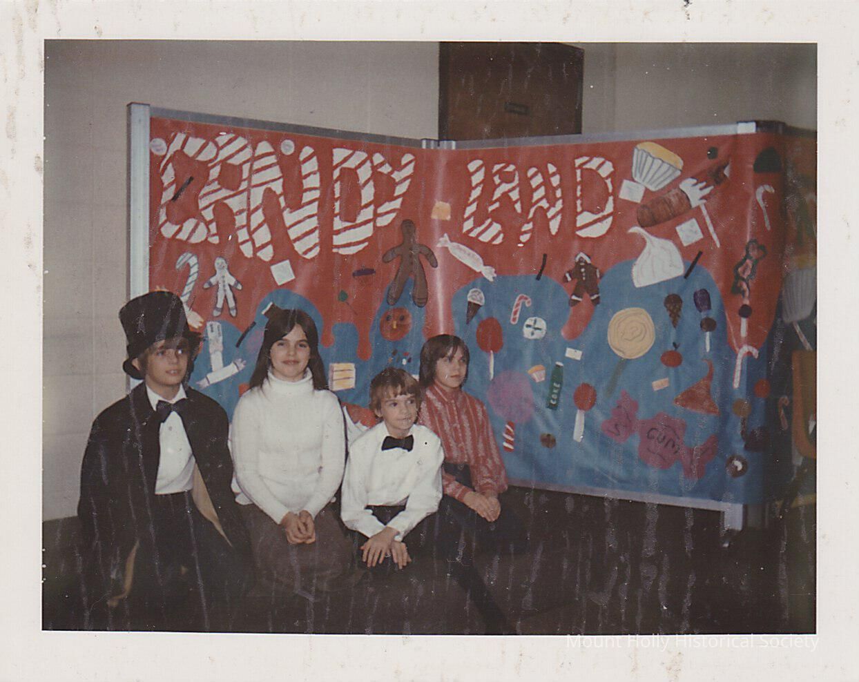 School Photos - School play, "Christmas Comes to Hamlin" - Scott Griffin's Class Bulletin Board - Actors in Play - Mark Hodges, Renee Howell, Joel Farmer, Scott Henson "Candyland"