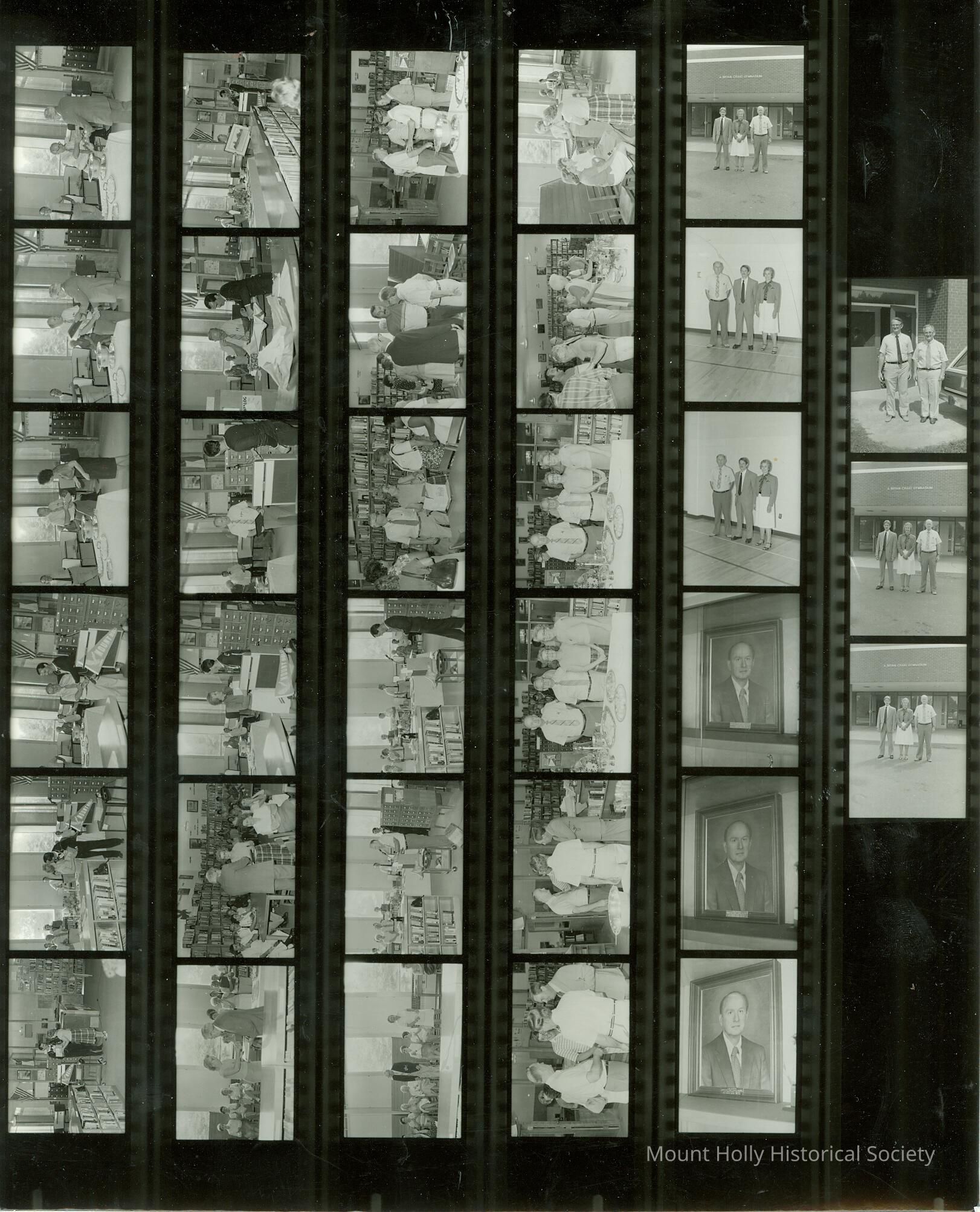 First photo of filmstrips which show many images of retirement party for Mt. Holly library staff