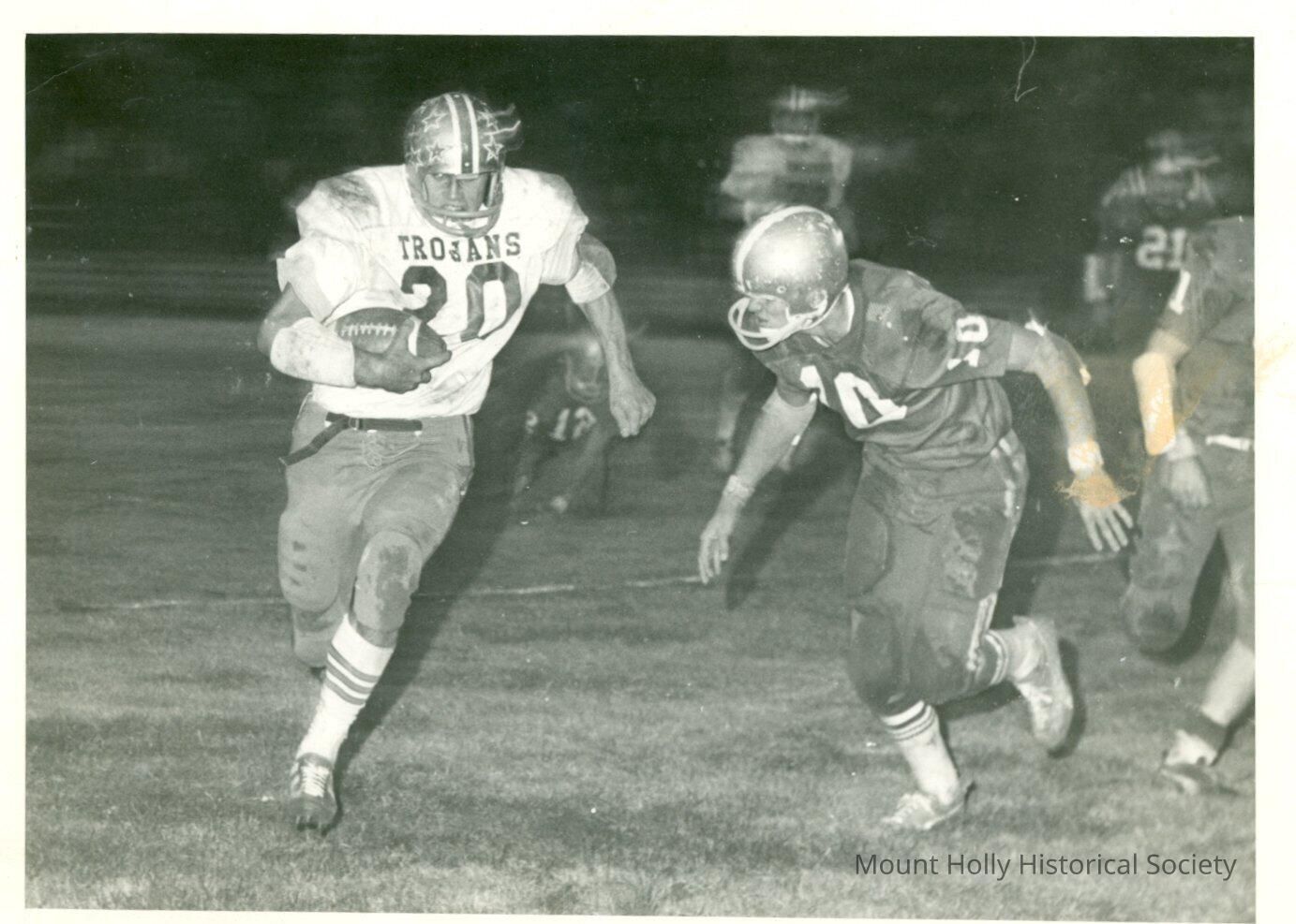 "Breaking Record": Football player in Trojan jersey runs with ball as another runs toward him