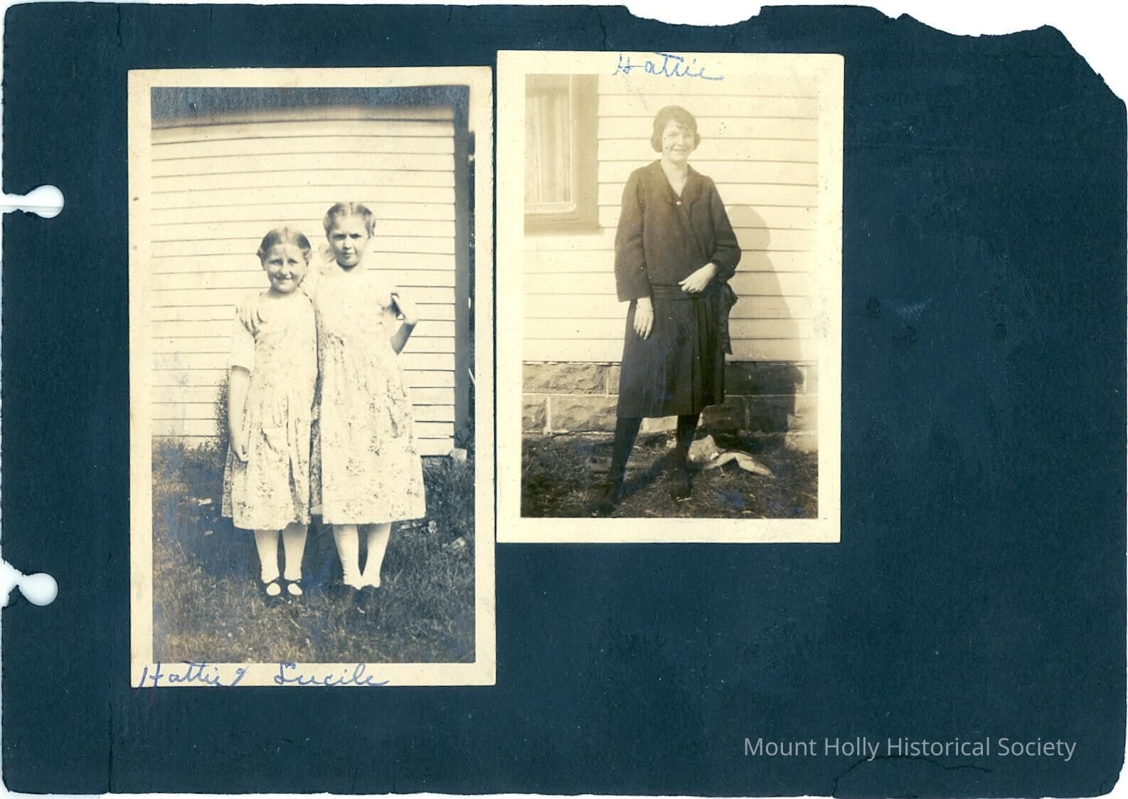Two photos on black paper: Left = "Hattie Lucile" Right = "Hattie"