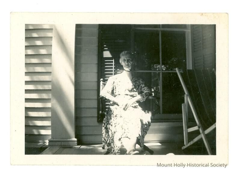 Elderly white woman seated in chair on porch, half in light, half in shadow. From back: "Mama, taken in June, 1941"