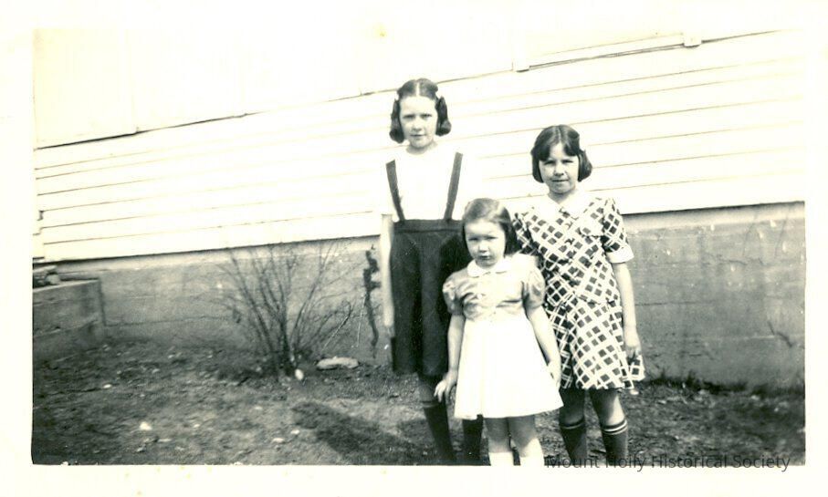 From back: "Carol age 10 Dec. 24 / Marian 8 June 15 / Shirley 4 Oct. 1st / Hazel Volnel's children"