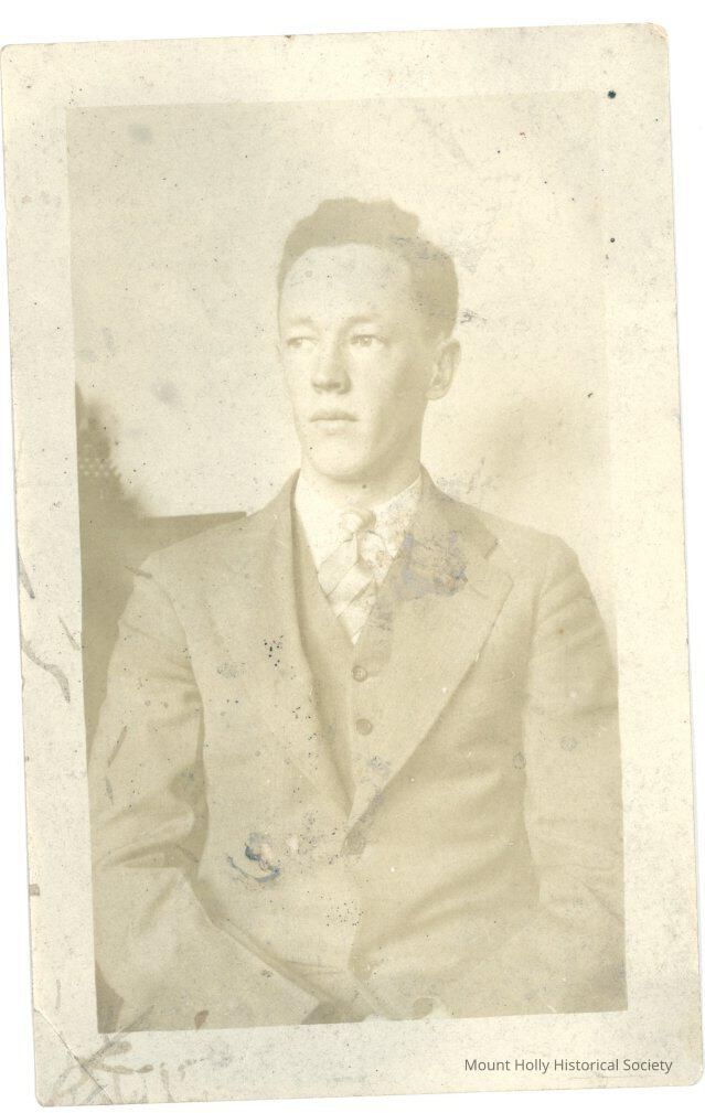 Young white man in a three-piece suit, seated, facing camera and looking to his right