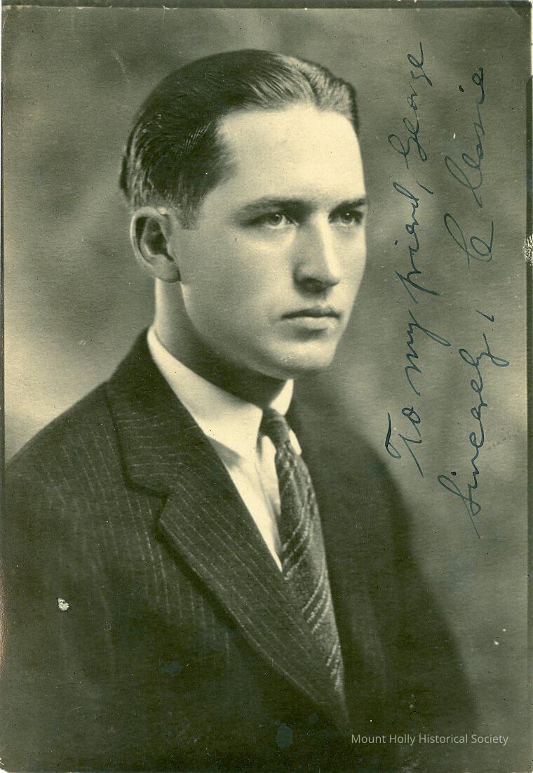 Black-and-white photo, inscribed on front "To my friend, George / Sincerely, Clessie"; on back "Clessie Andrews / (friend of George Tucker) / (Chaplain in WWII)"
