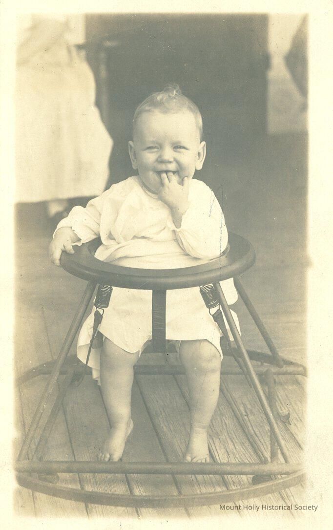 Charles Anderson as an infant in a circular chair; he drowned at age 12