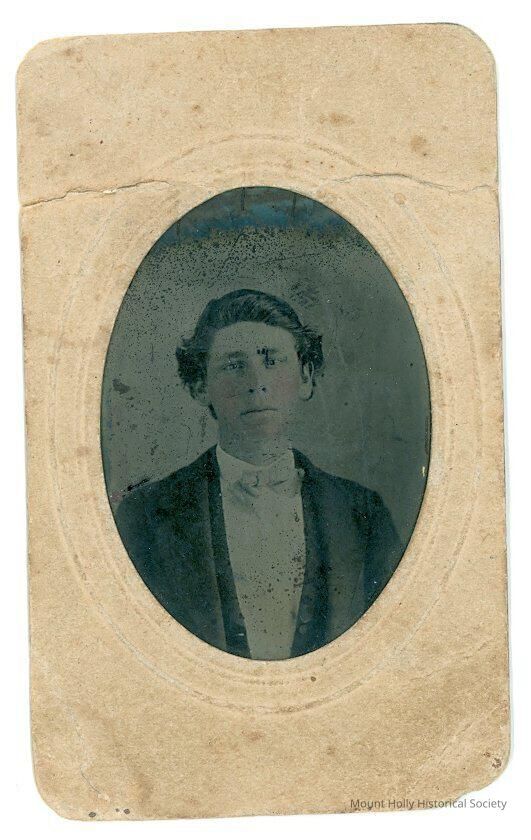 Young white man, in formal attire, from chest up looking at camera; from back "Joel Franklin Shuford / Circa 1875"