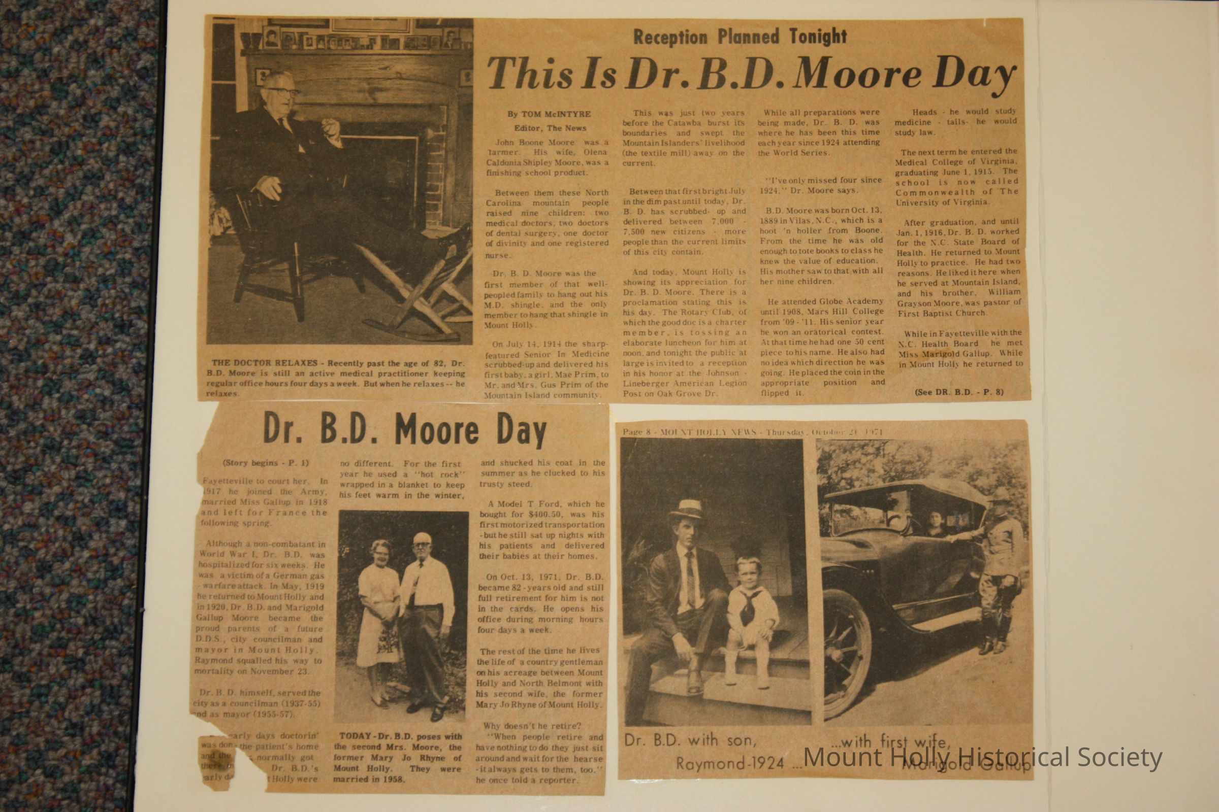 Newspaper article from Mt. Holly News about Dr. Moore Day, October 21, 1971