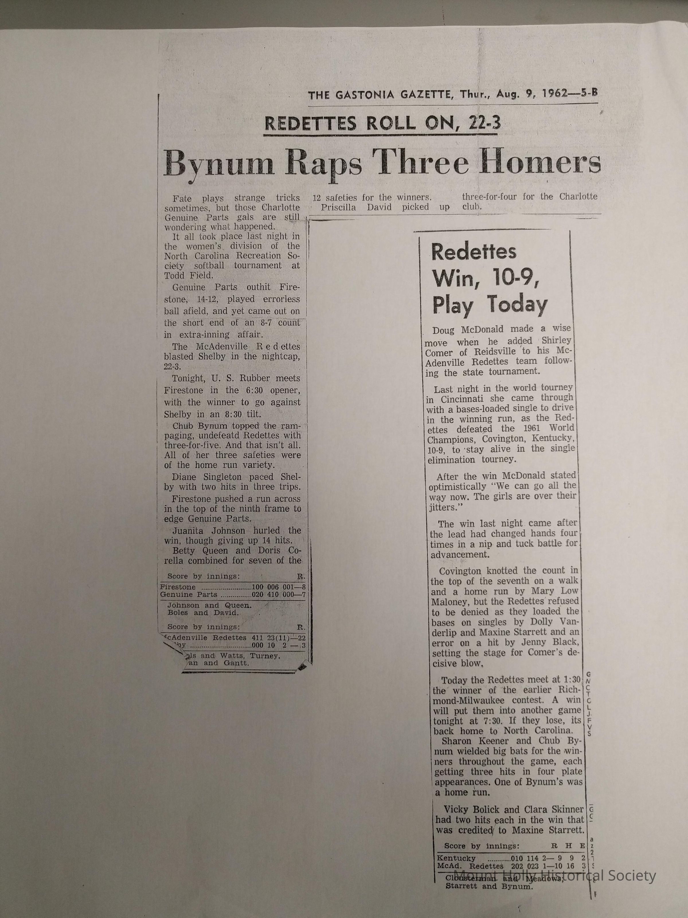 Copy of Gastonia Gazette article Chub Bynum homerun softball