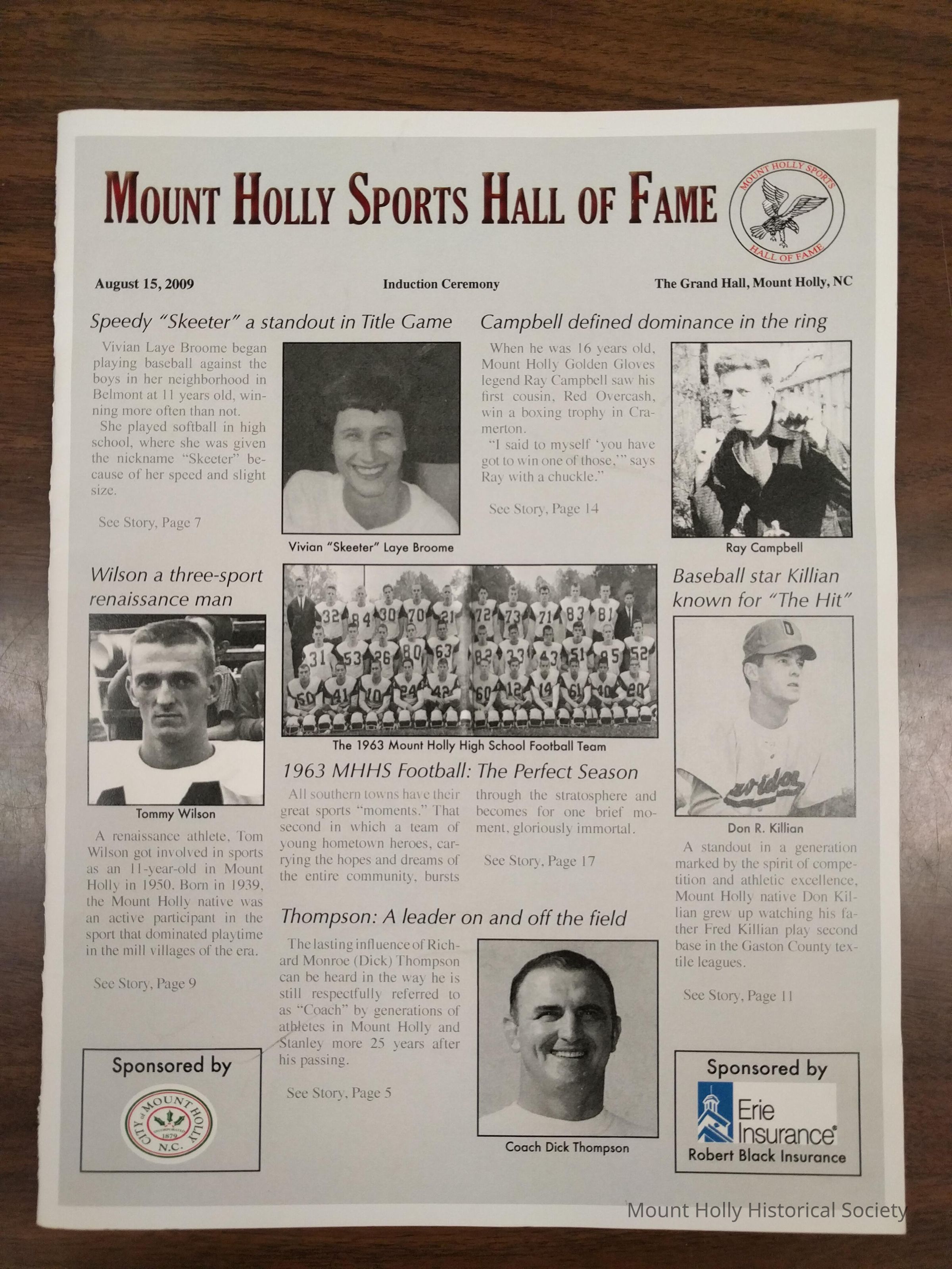 Mount Holly Sports Hall of Fame Induction Ceremony program