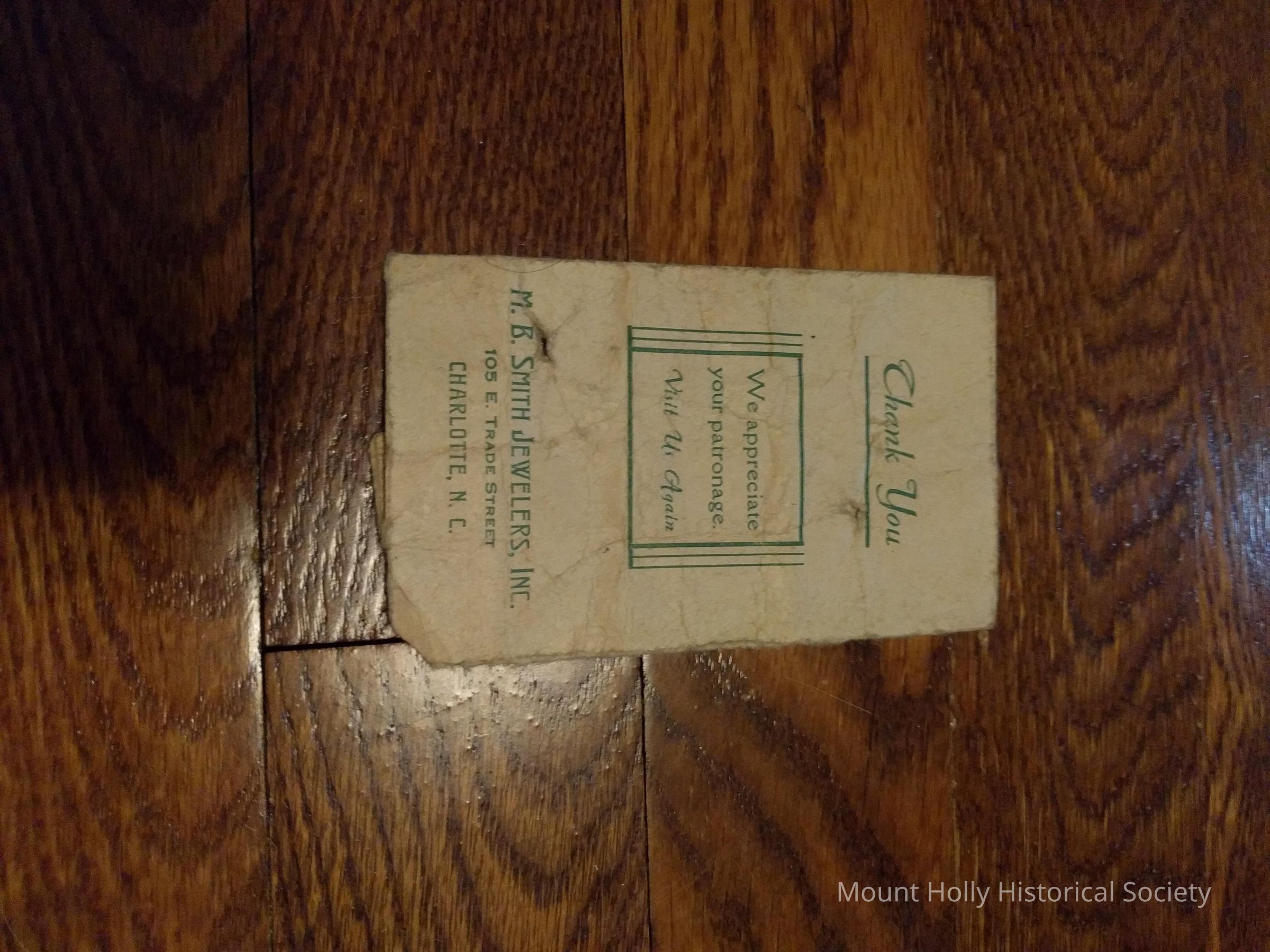 Envelope, M.B. Smith Jewelers, CHarlotte, NC