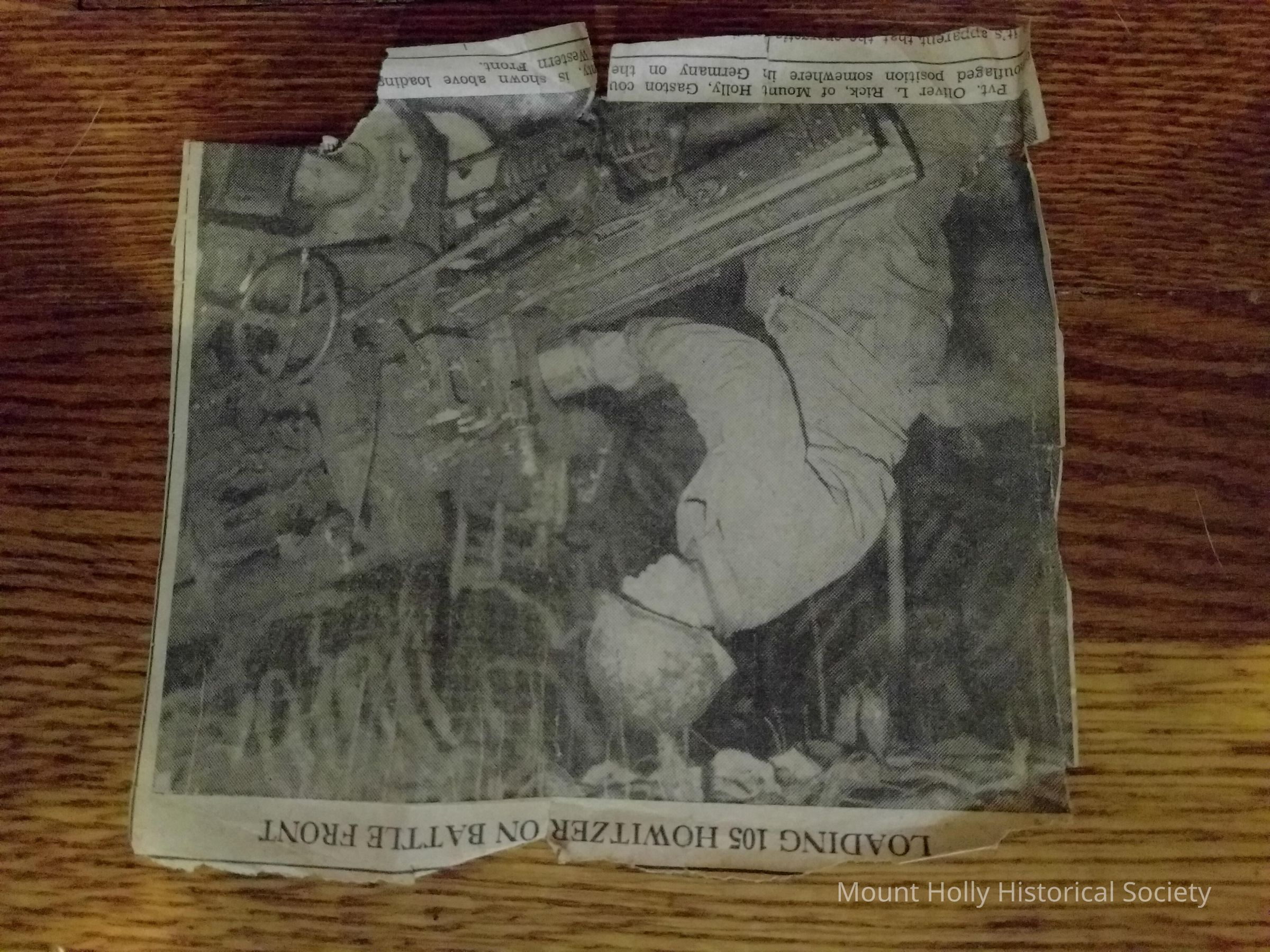 Newspaper clipping, Private Oliver L. Rick loading gun in Germany, military