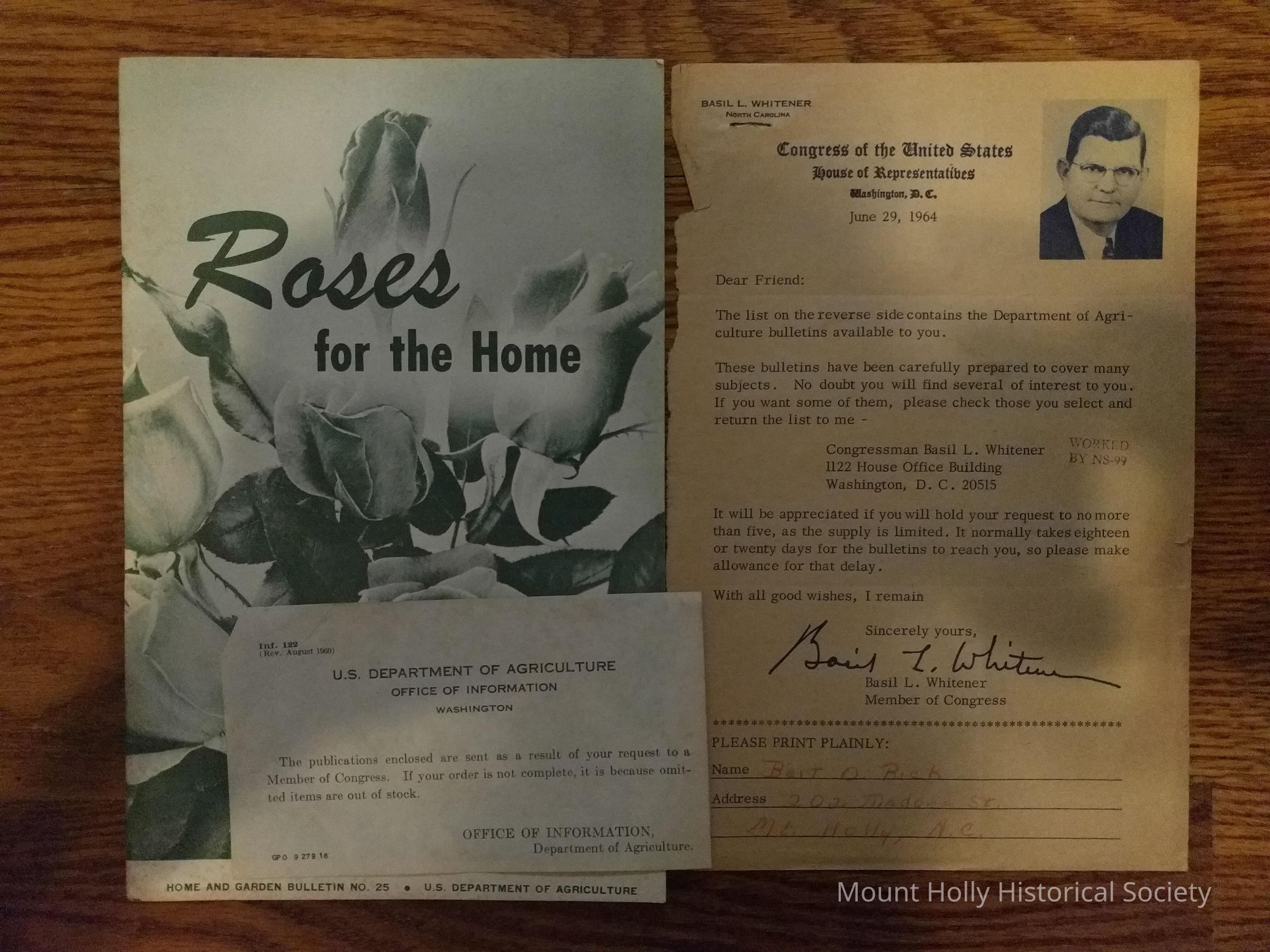 Brochure "roses for the home" with letter from Congressman, Department of Agriculture