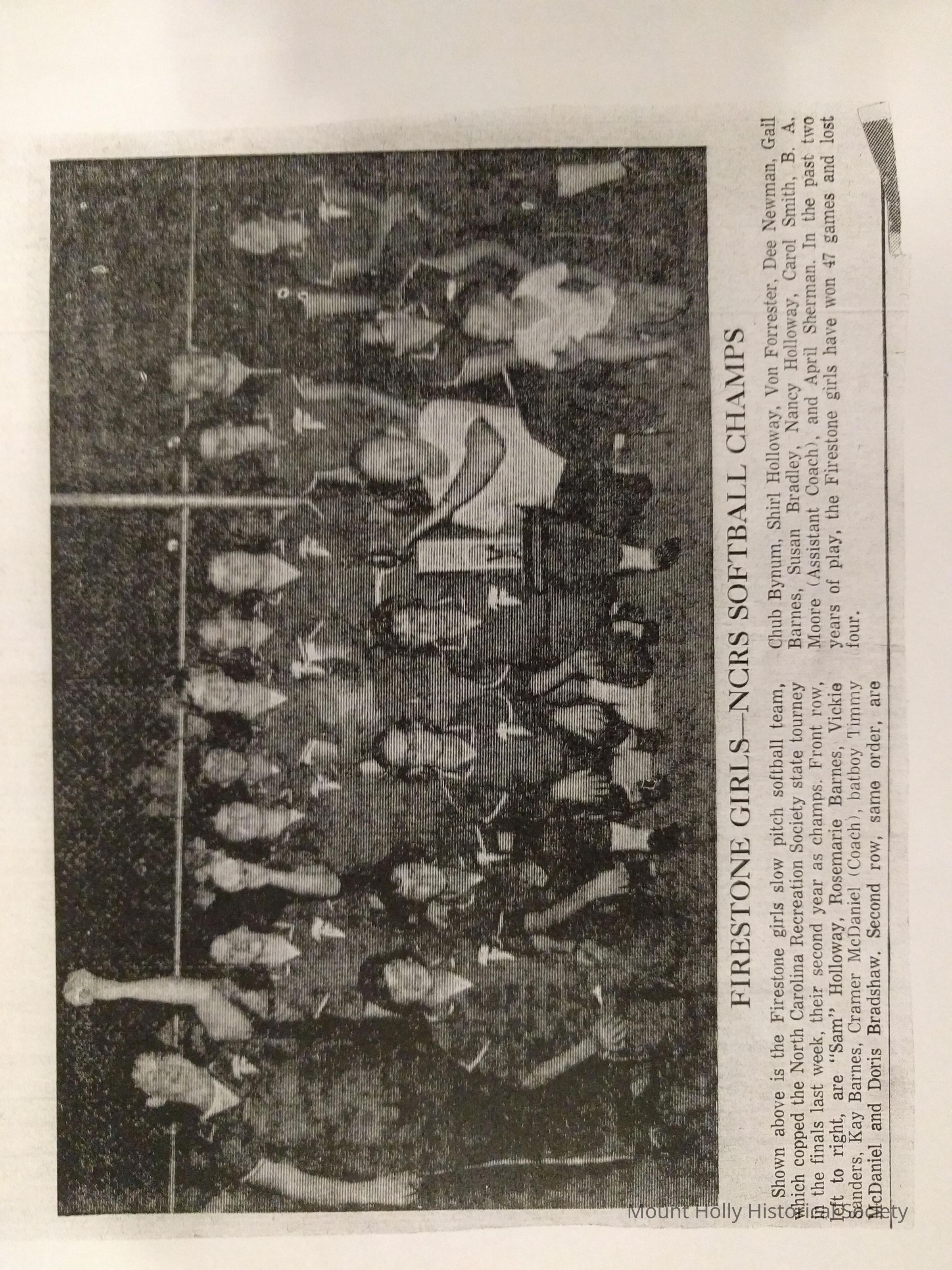 Copy - newspaper clipping "Firestone girls NCRS Softball Champs" Chub Bynum