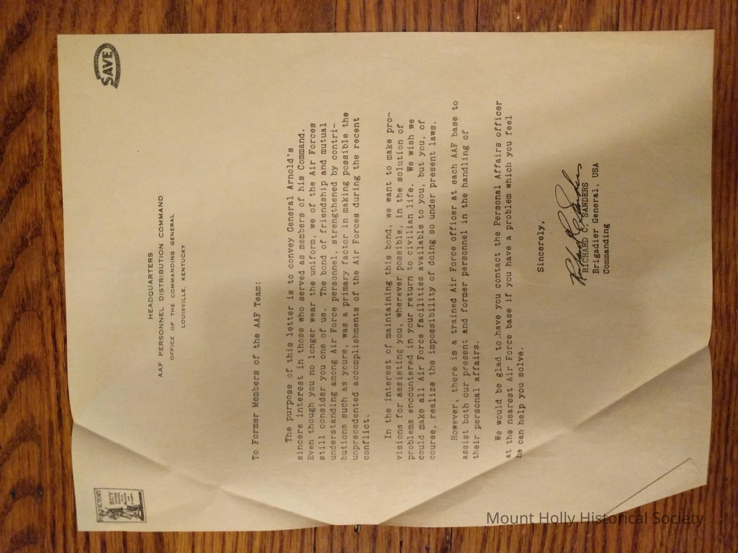 Certificate of appreciation to Charles Stowe and letter from Richard Sanders Brigadier General