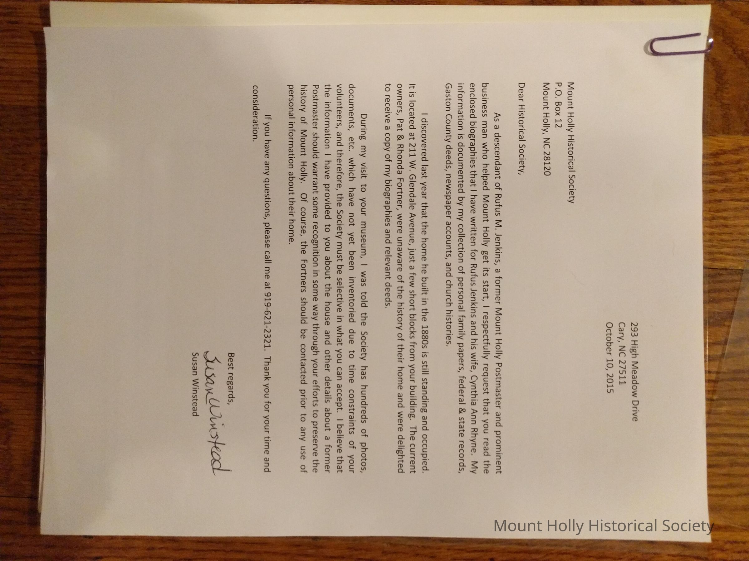 Biography Rufus Jenkins and Cynthia Ann Rhyne by Susan Winstead