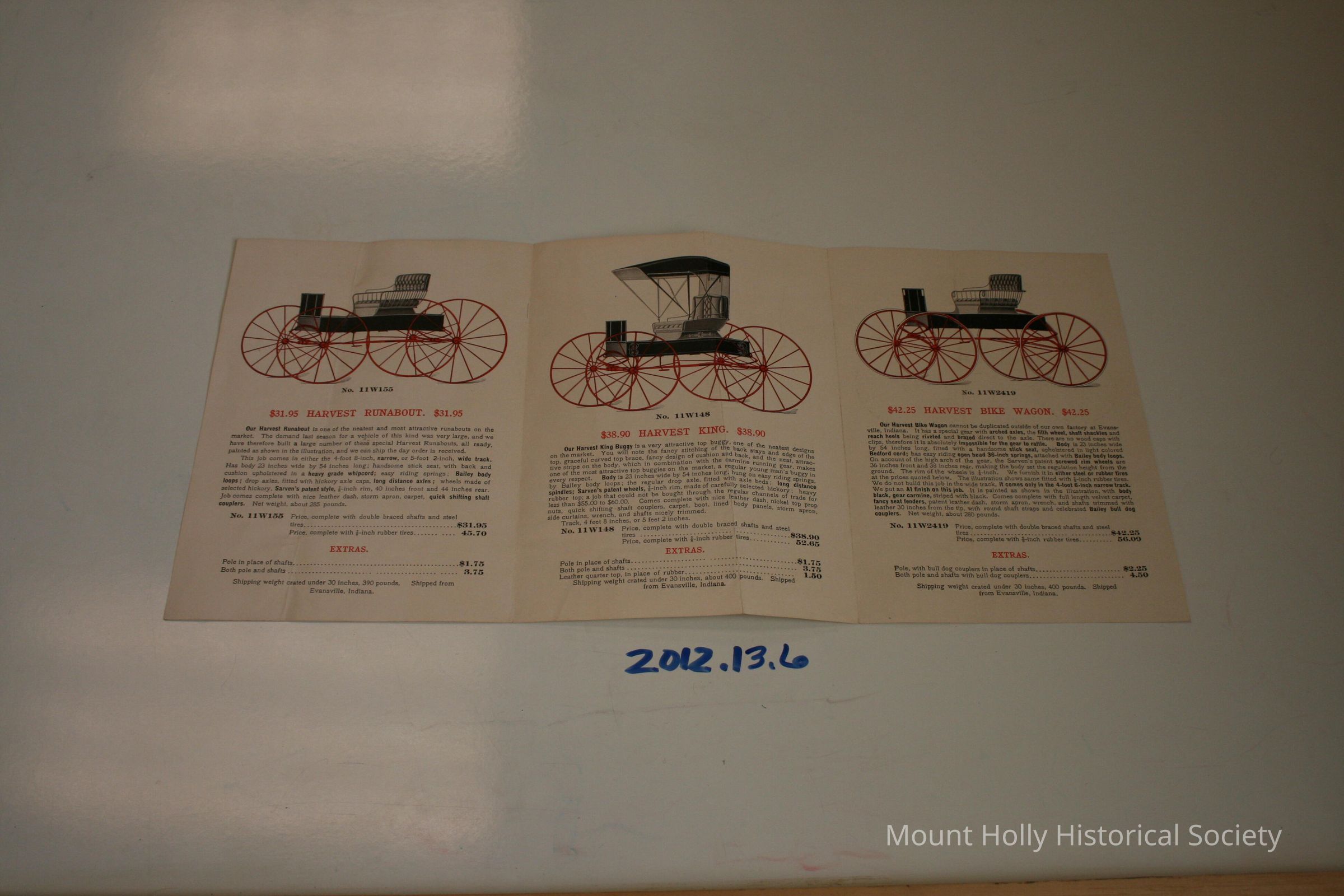 Letter from Sears Roebuck supply house to W L Tucker, Mountain Island with envelope, return envelope, and "Harvest Beauties" catalog of carriages