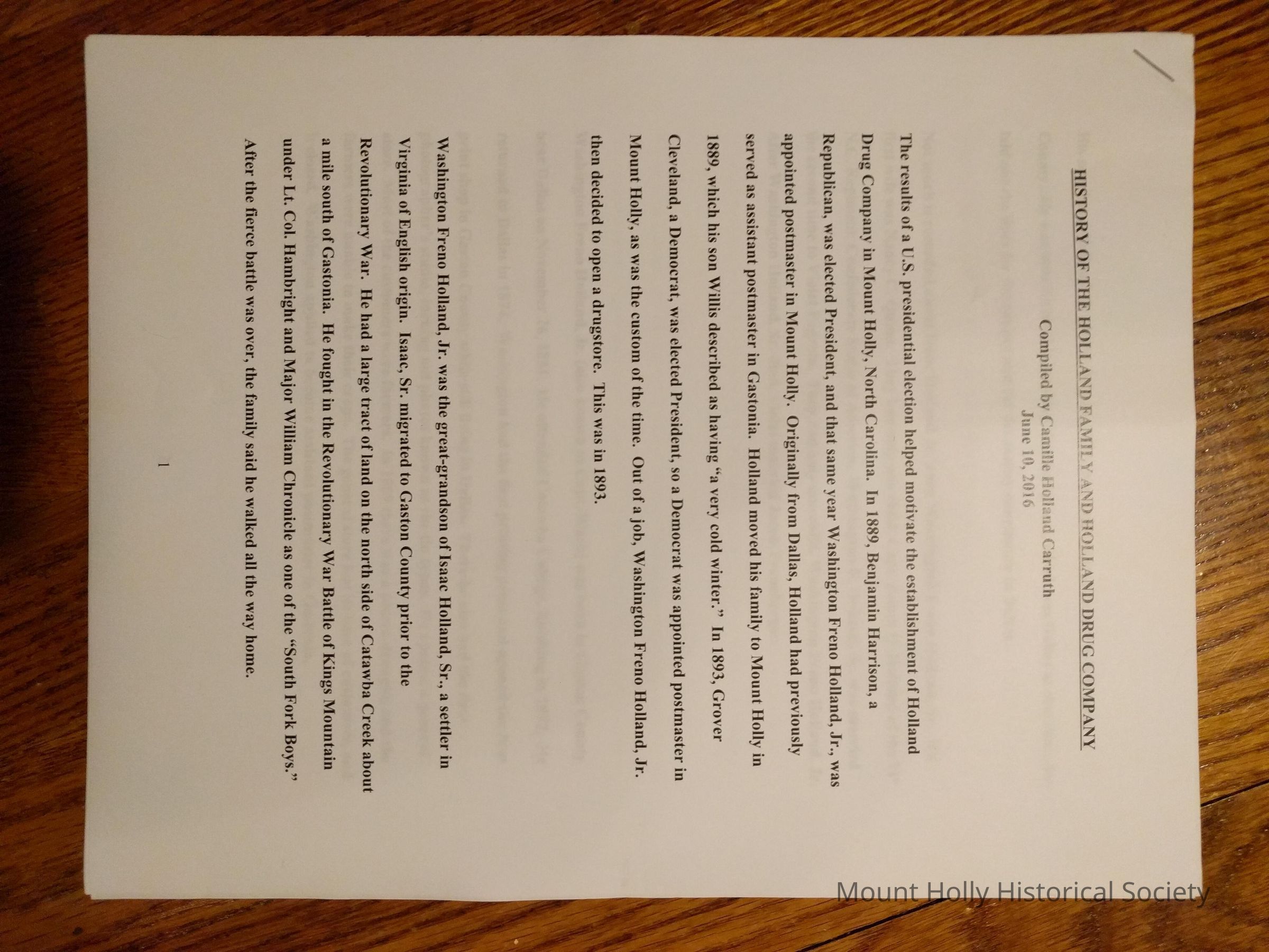 History of Holland family & Holland Drug Company
