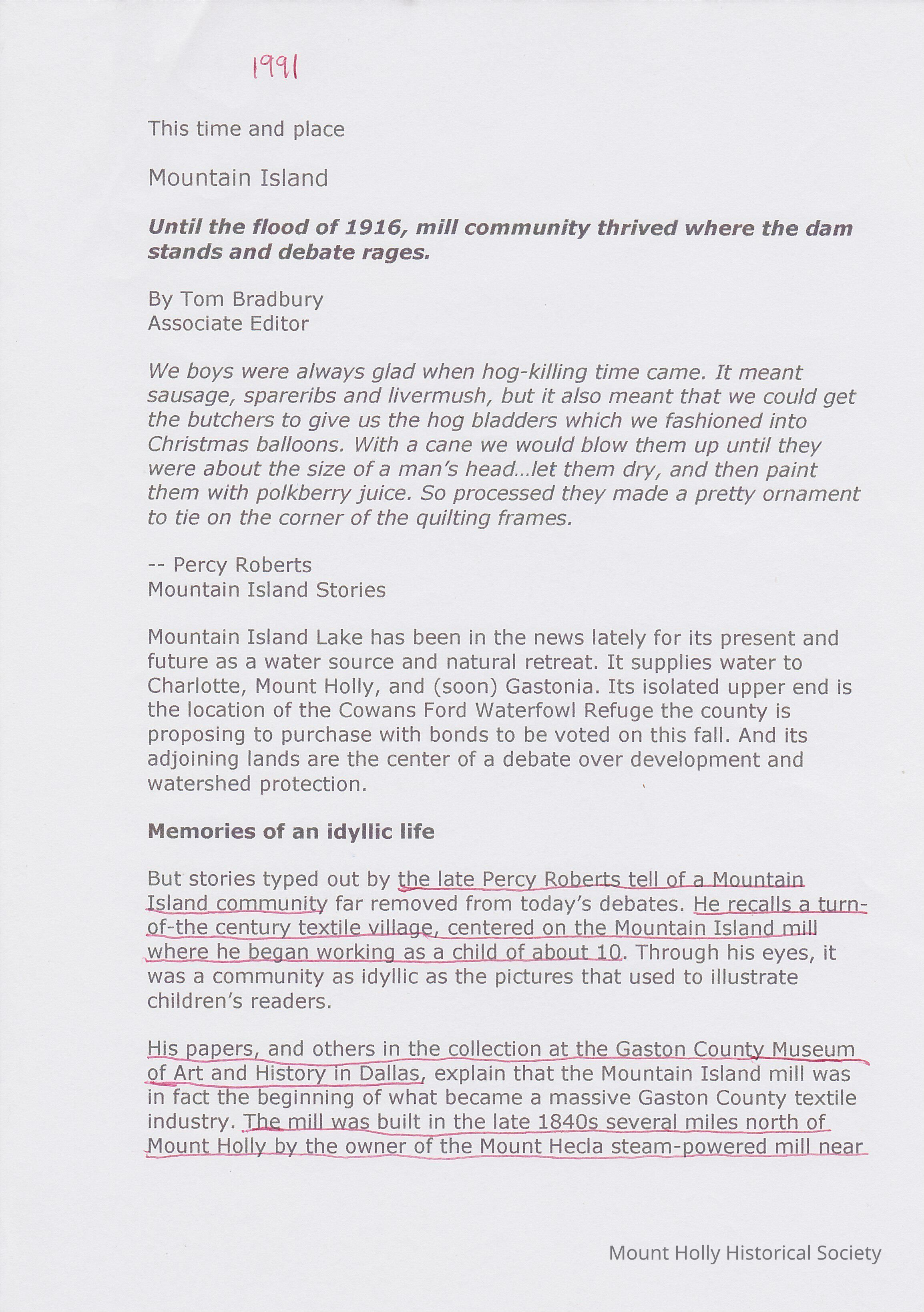 Transcript - Charlotte Observer article - Mountain Island 1916 Flood