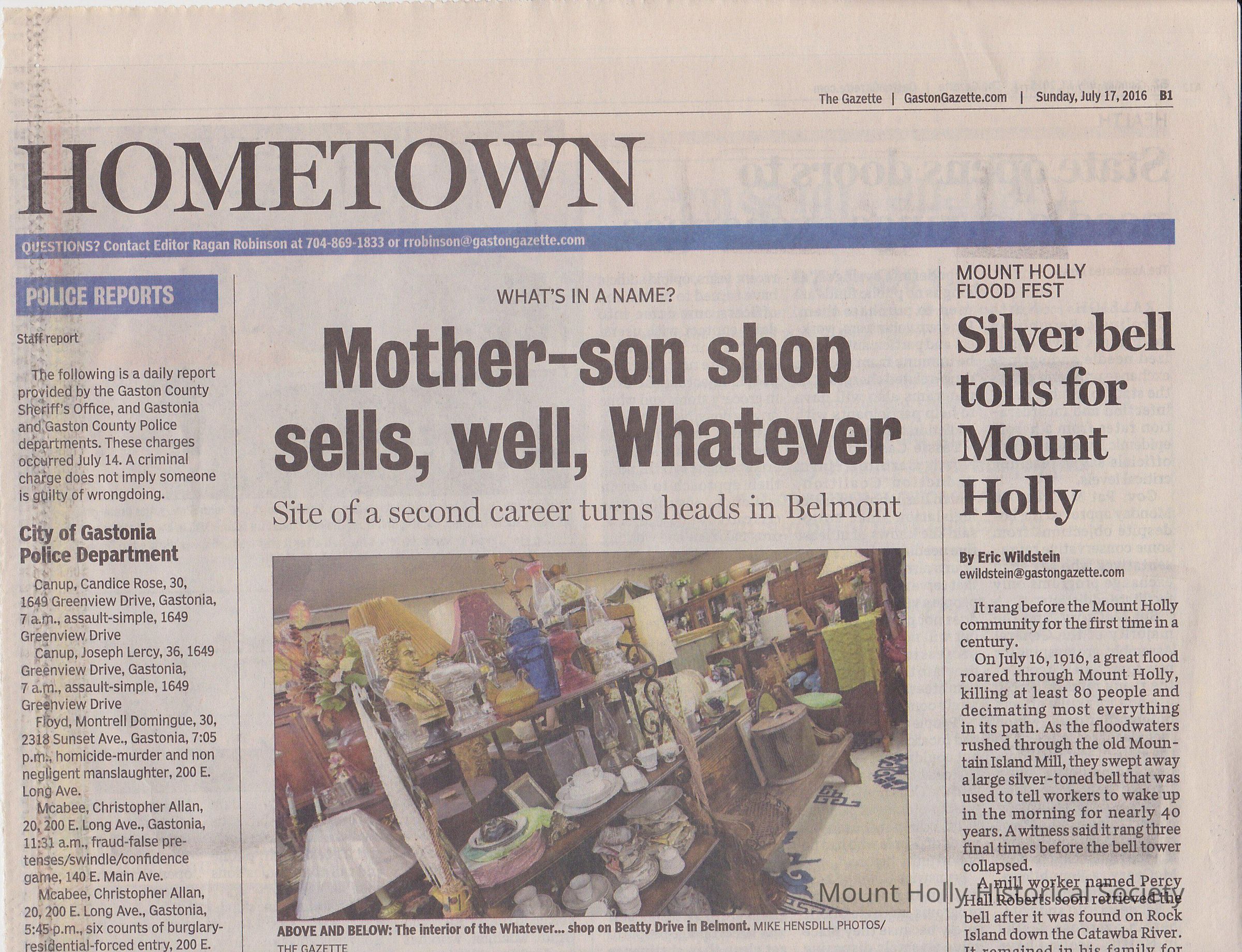 Newspaper - Gaston Gazette "Silver Bell Tolls for Mount Holly" 1916 Flood