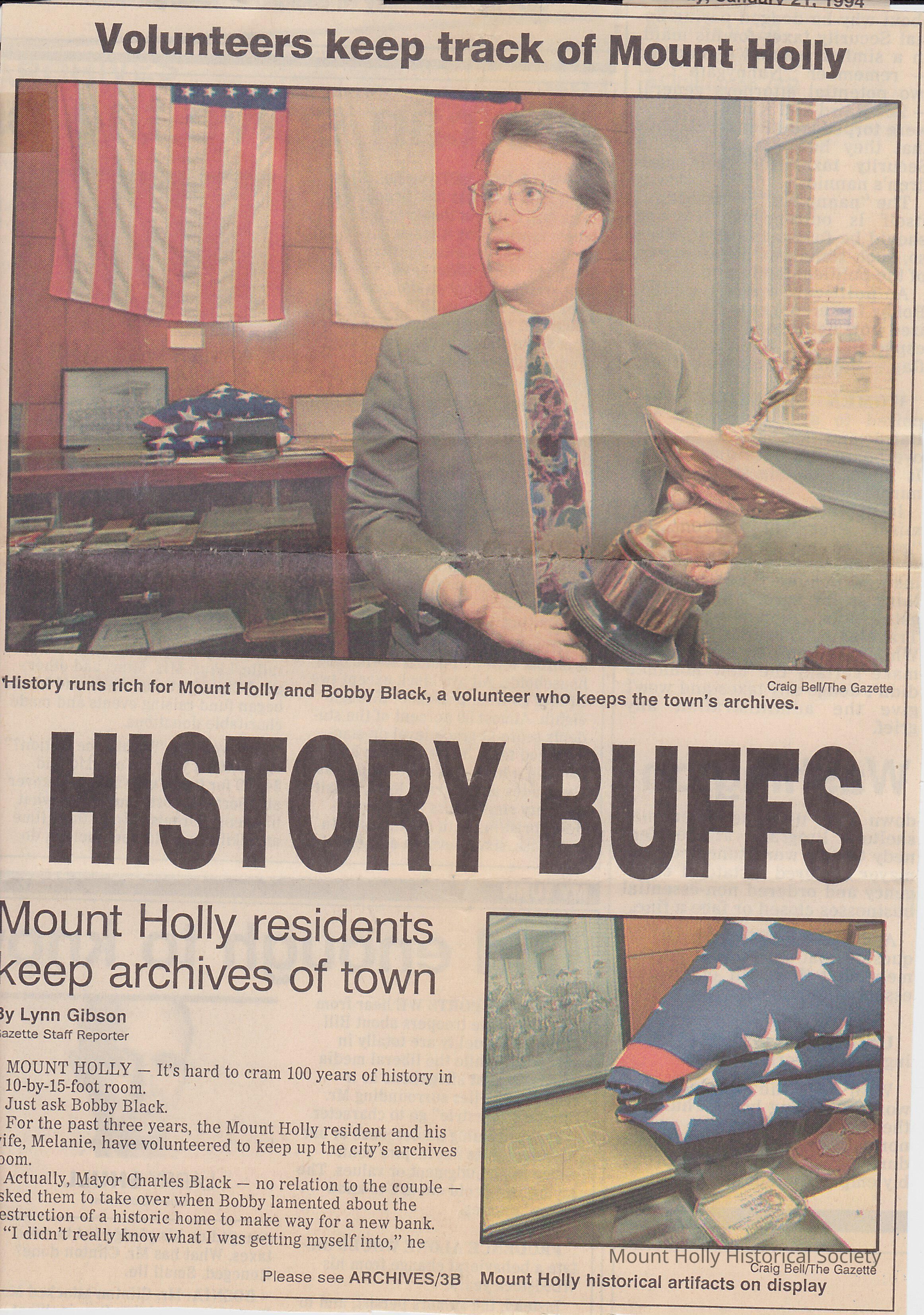 Newspaper Clipping "Volunteers keep track of Mount Holly" - Bobby Black