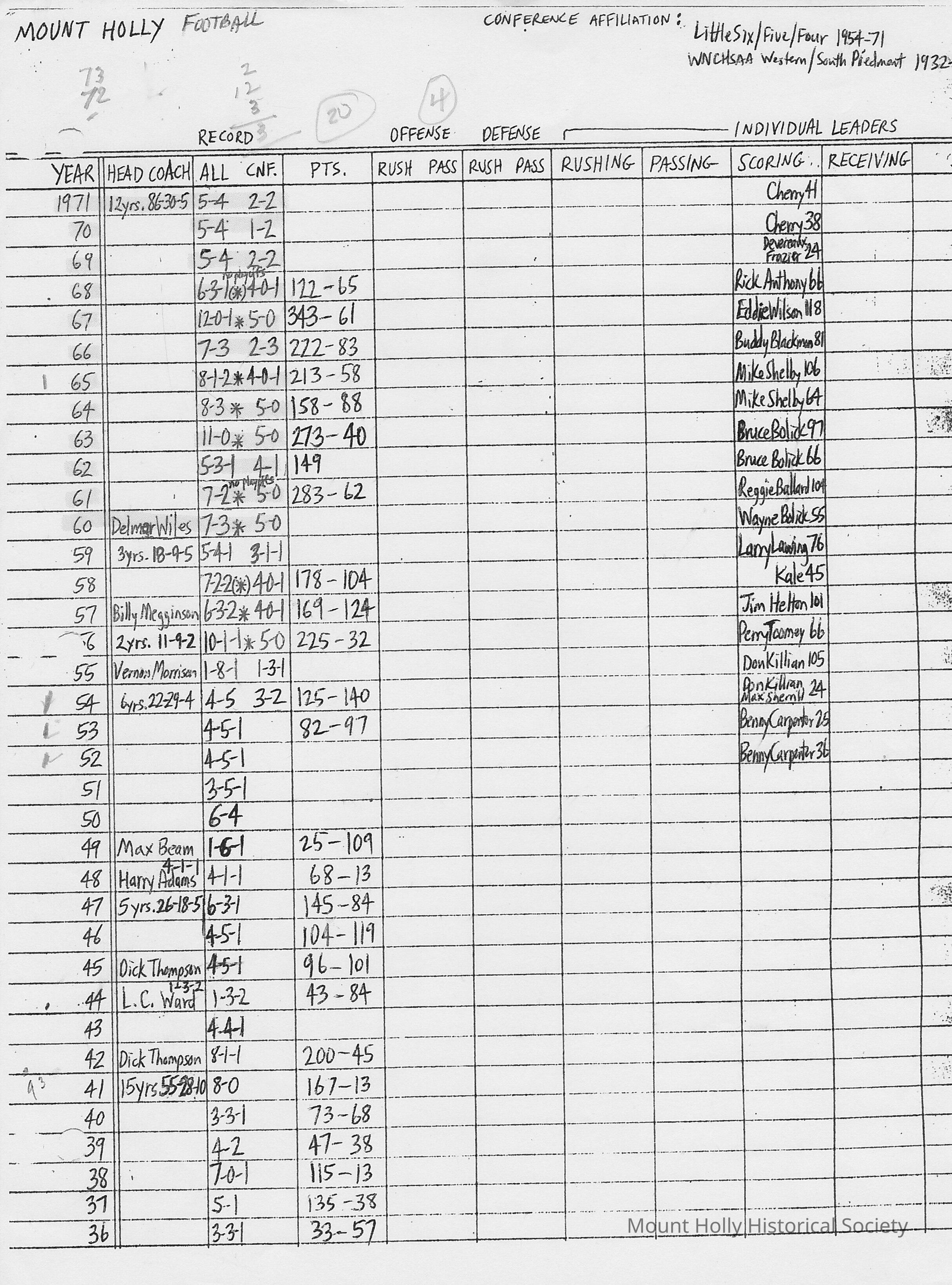 Mount Holly Football Records, Coaches