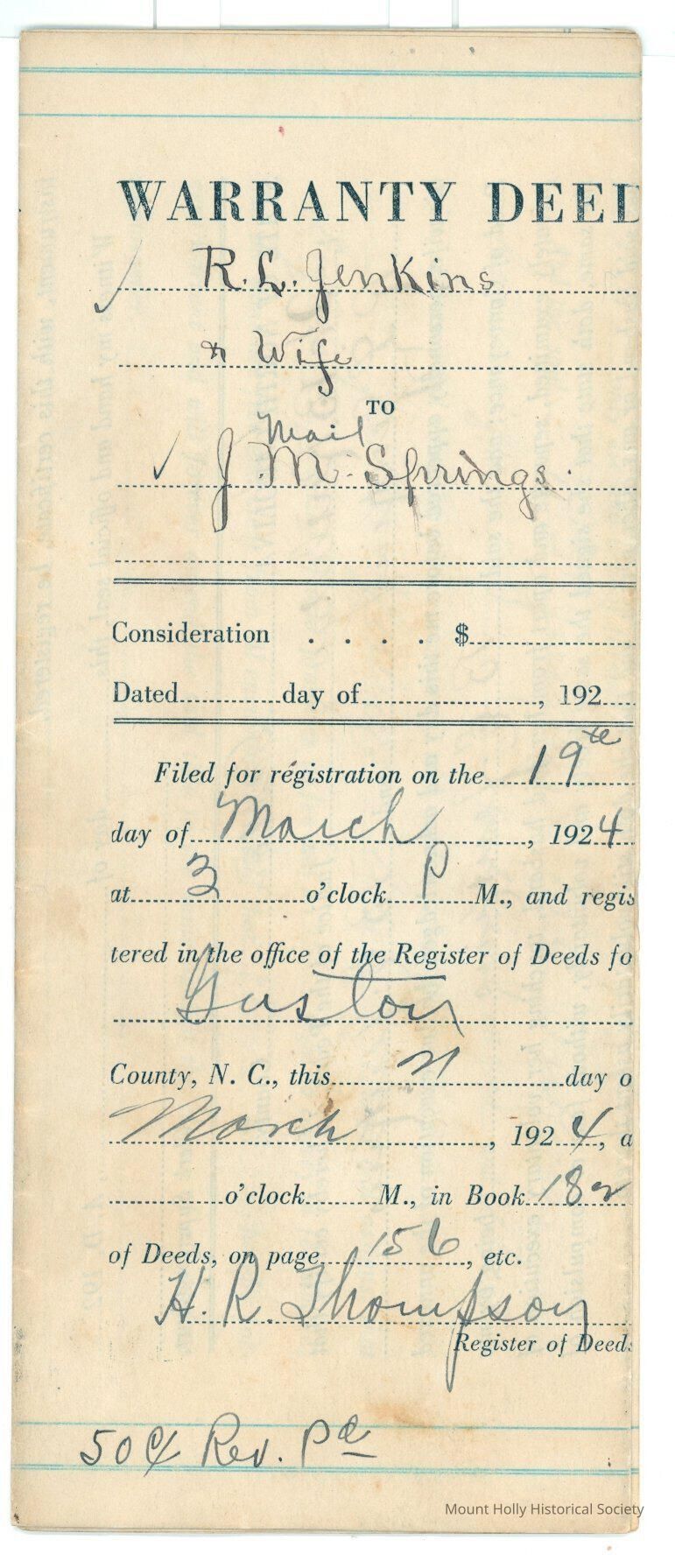 Warranty deed of R.L. Jenkins and his wife to J.M. Springs