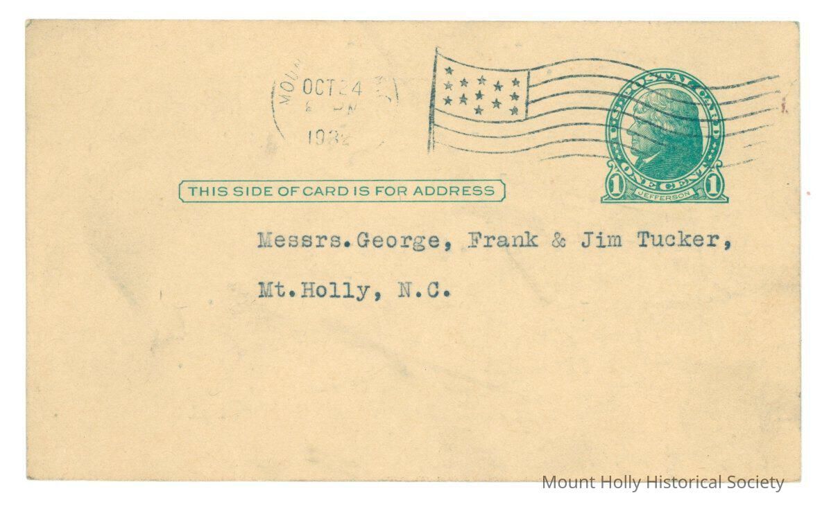 Postcard to George, Frank, & Jim Tucker, advertising dancing lessons @ Hotel Juliet in Mt. Holly