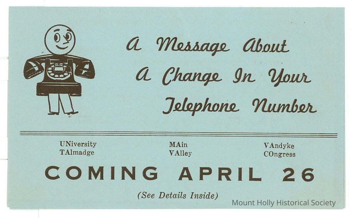 Notice from Southern Bell that telephone numbers were to be changed soon