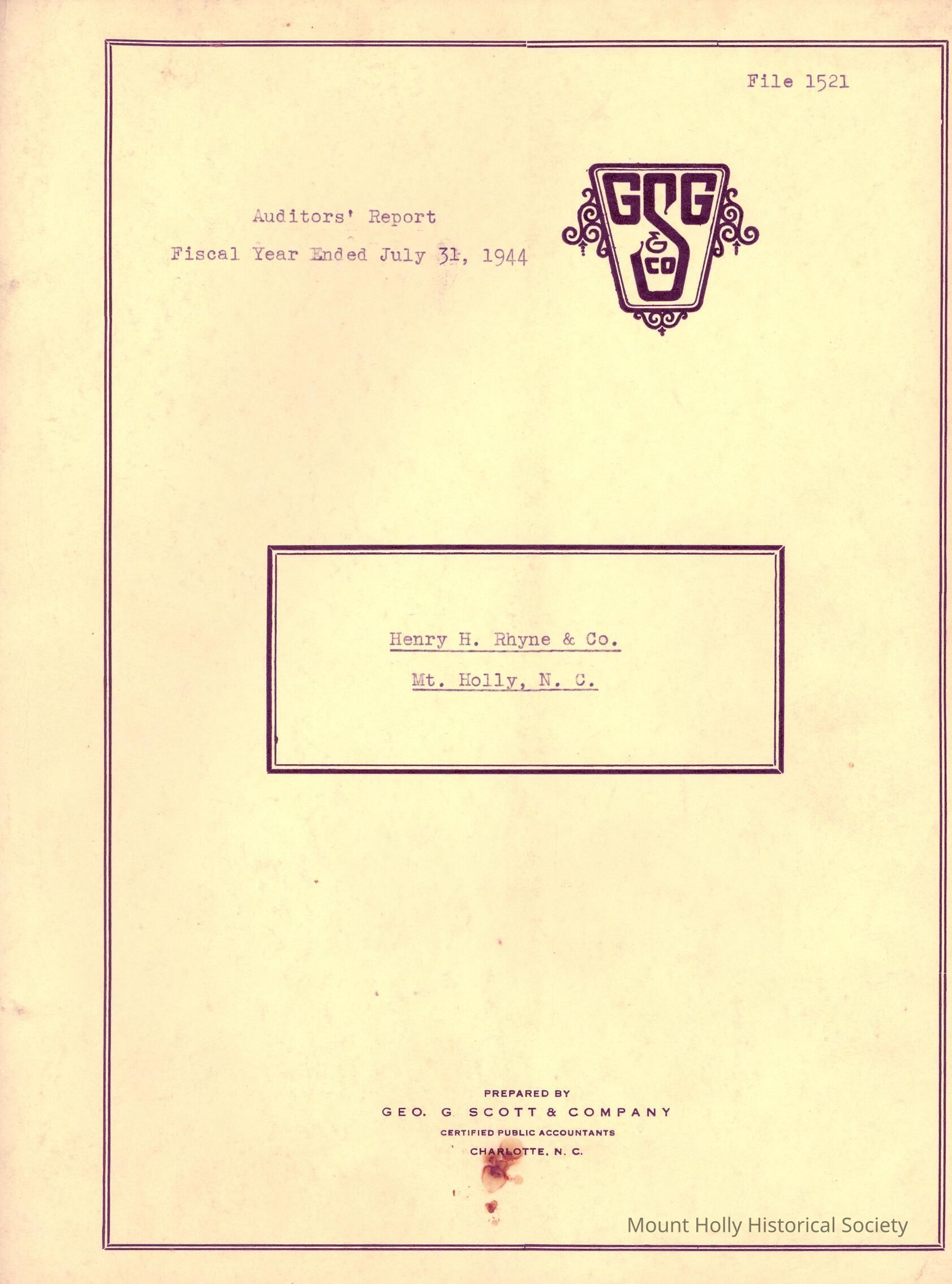 Auditors' Report and income tax returns for Henry H. Rhyne & Co. for the fiscal year ended July 31, 1944