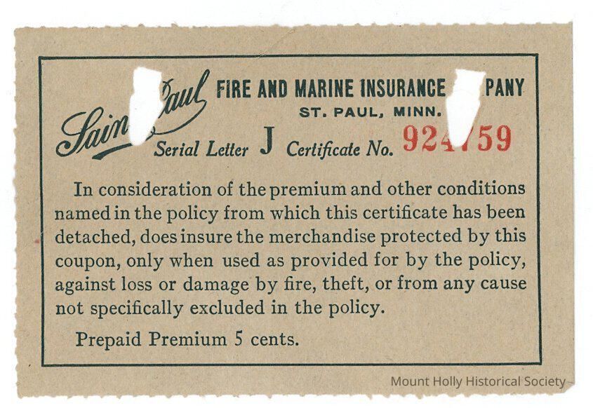 Coupon from St. Paul Fire & Marine Insurance Co. to insure merchandise