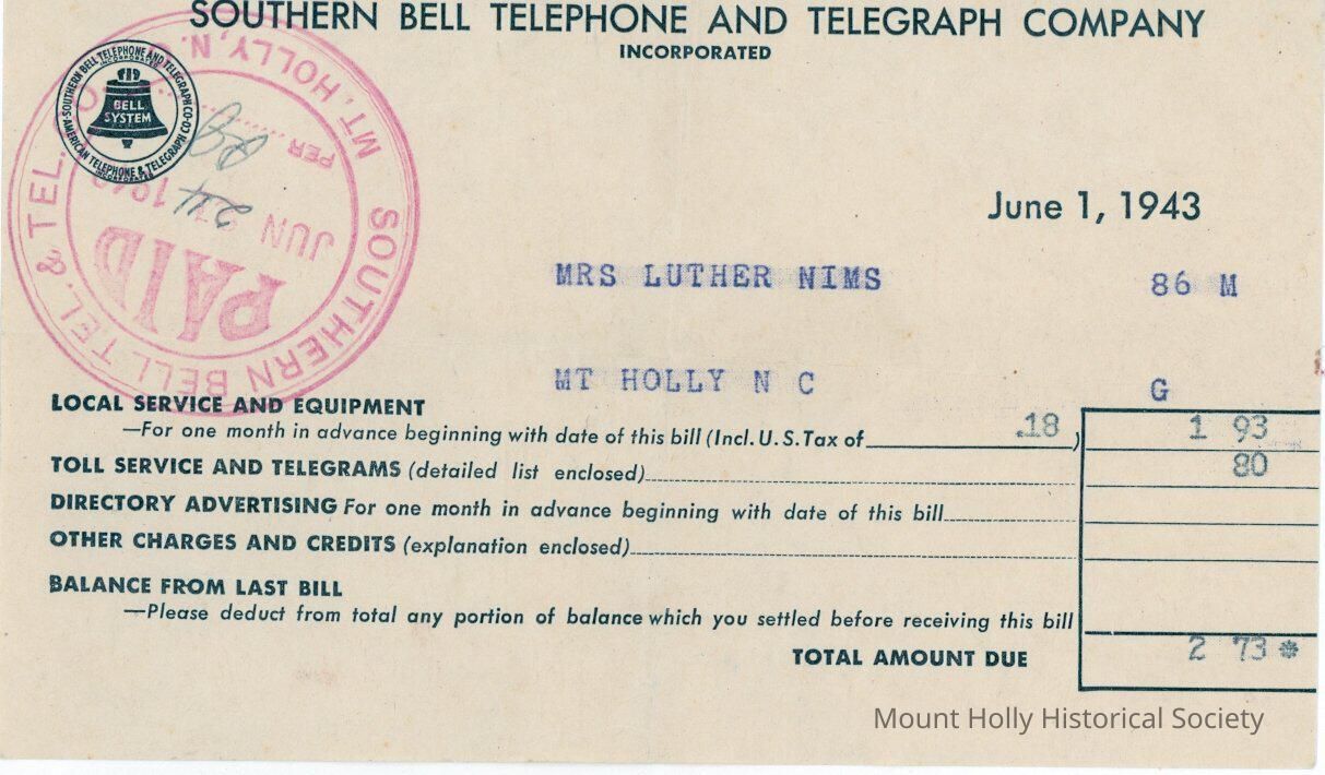 Southern Bell Telephone and Telegraph Company - Mrs Luther Nims