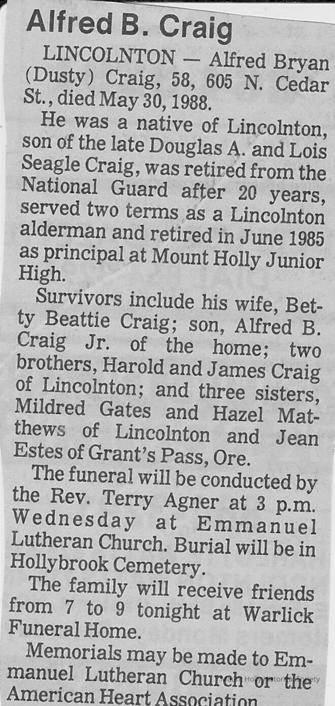 Obituary Alfred B Craig - Mount Holly High School/Junior High School Principal