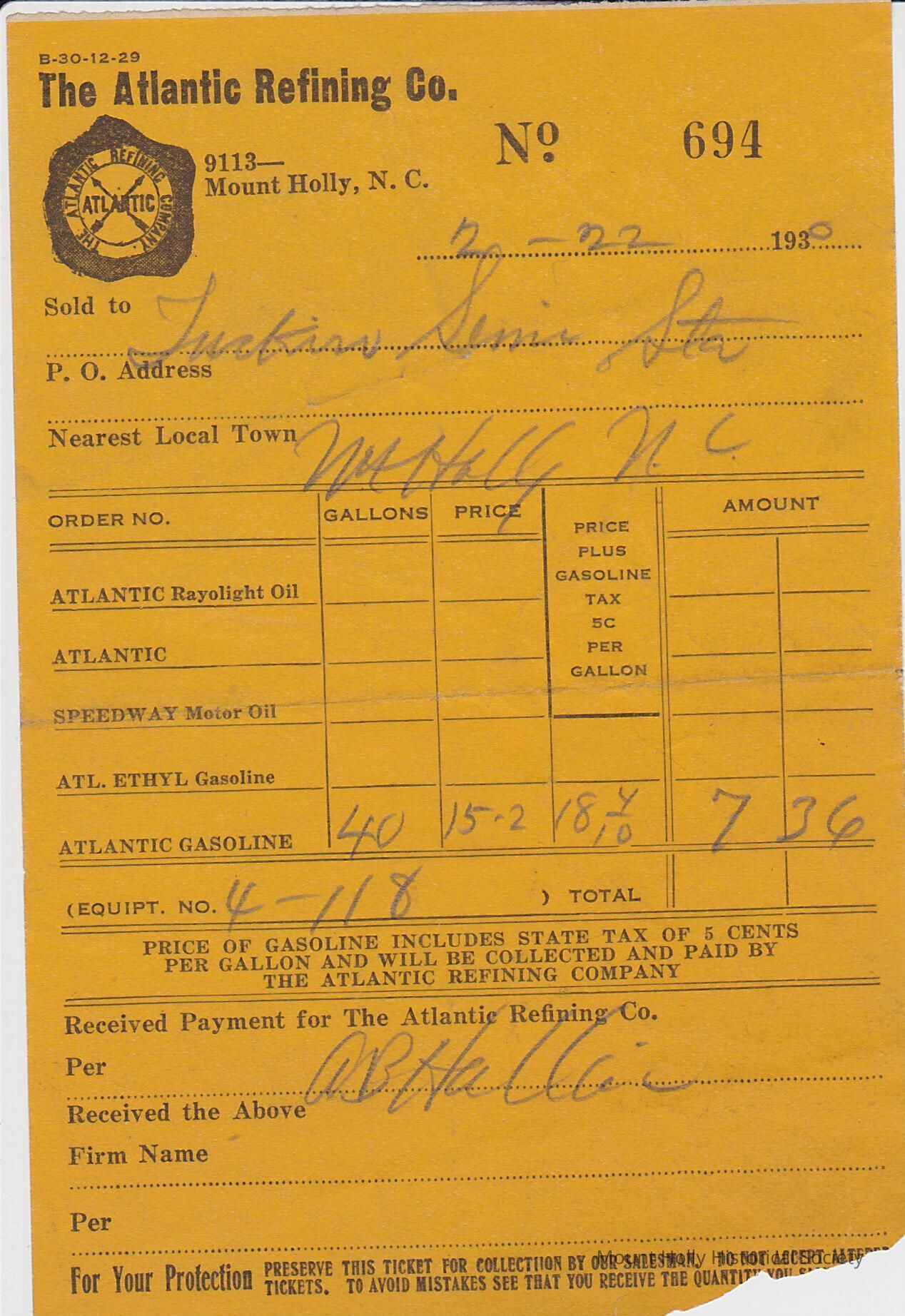 Atlantic Refining Co. - Receipt - Gasoline for Tucker Service Station
