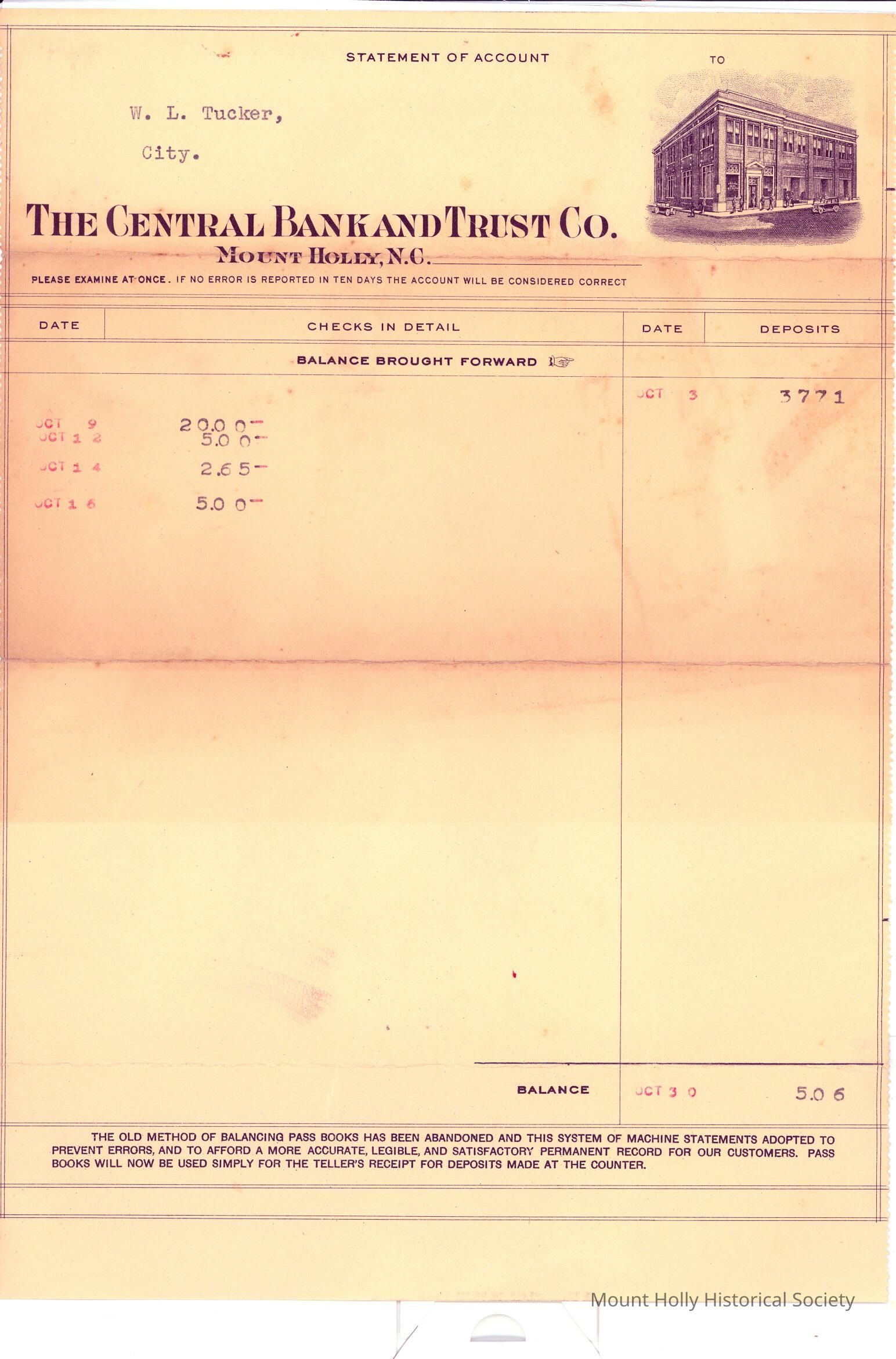 The Central Bank & Trust Co. - WL Tucker - Statement of Account