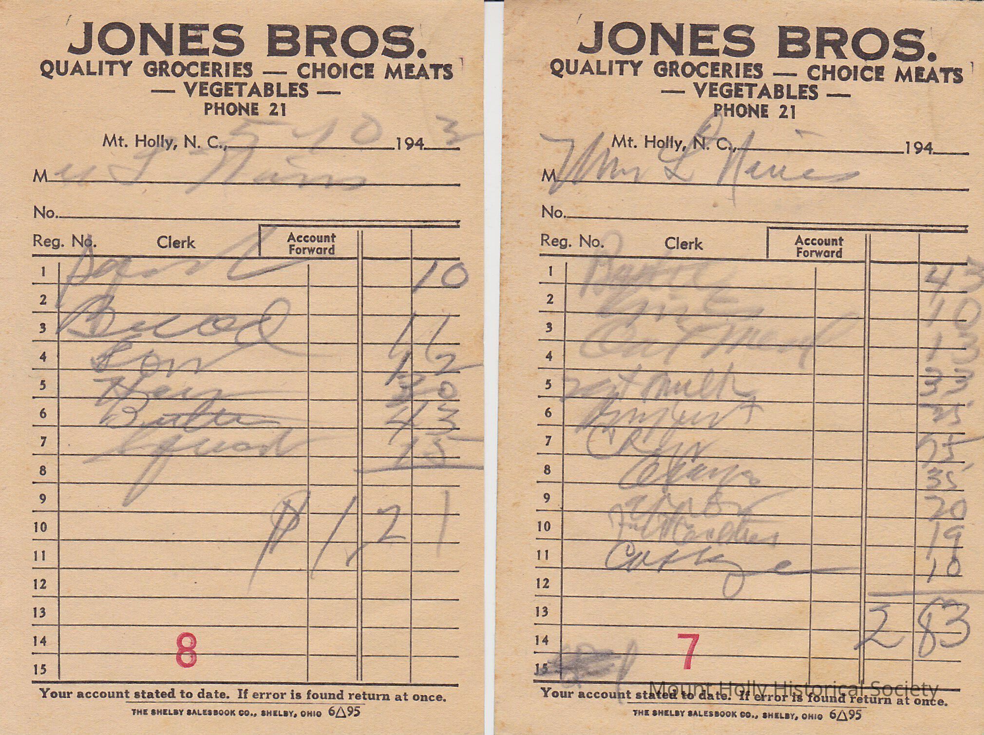 Jones Brothers Grocery Store Receipts - Luther Nims