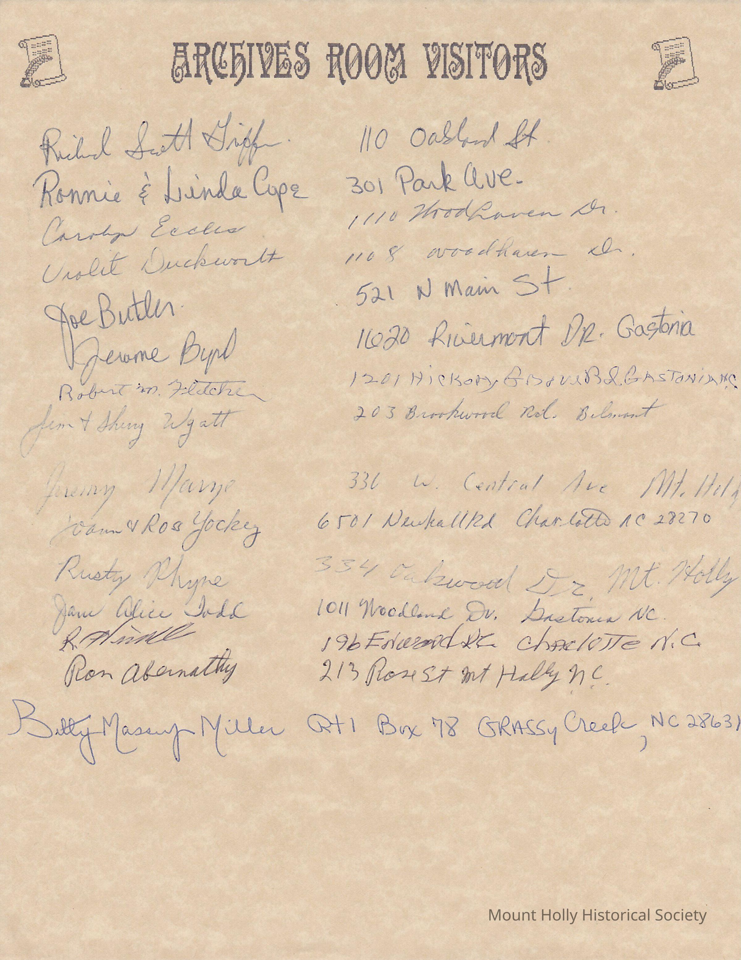 Archives Room Visitors - Mount Holly Historical Society Visitor Log