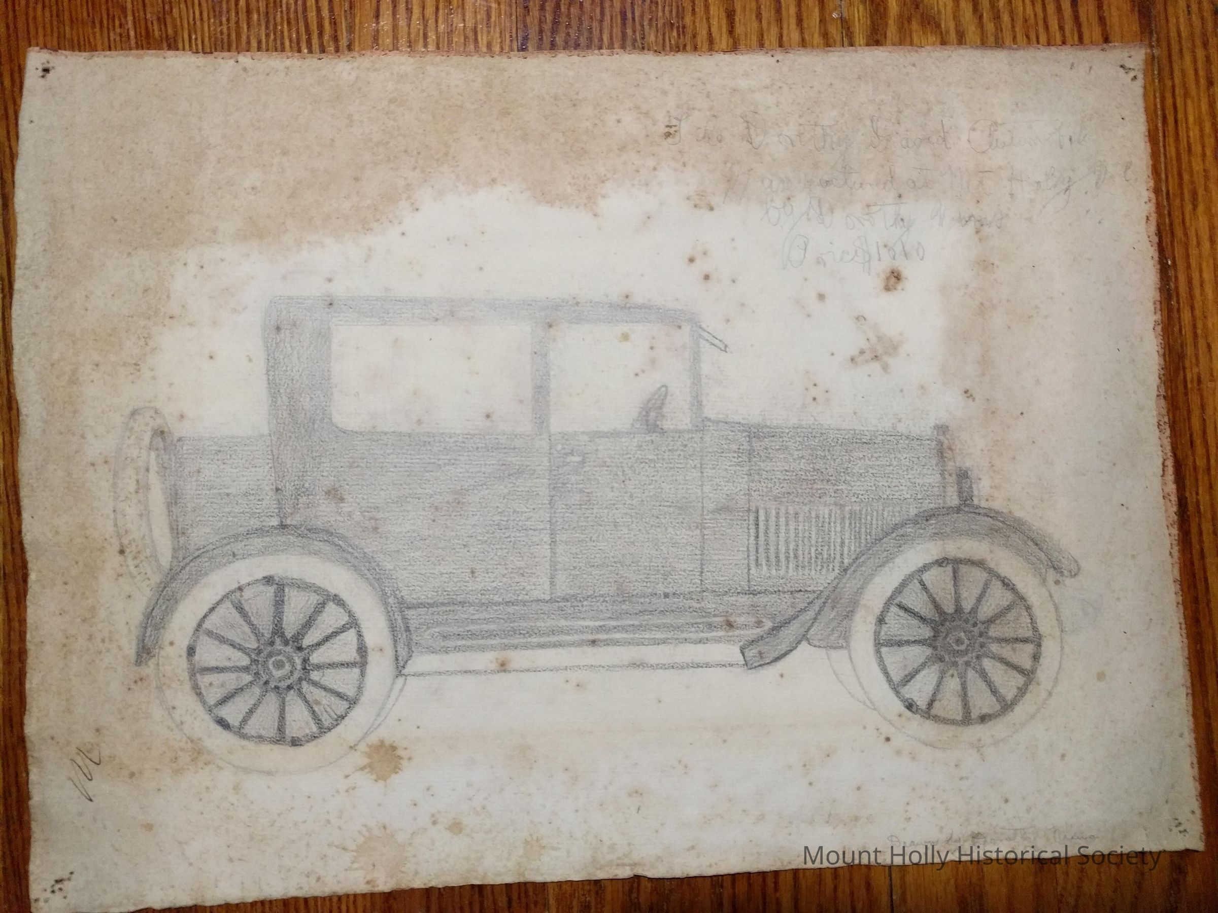 Hand Pencil Drawing by Dorothy Nims "The Dorothy David Automobile Manufactured at Mount Holly NC by Dorothy Nims - Price $1010)