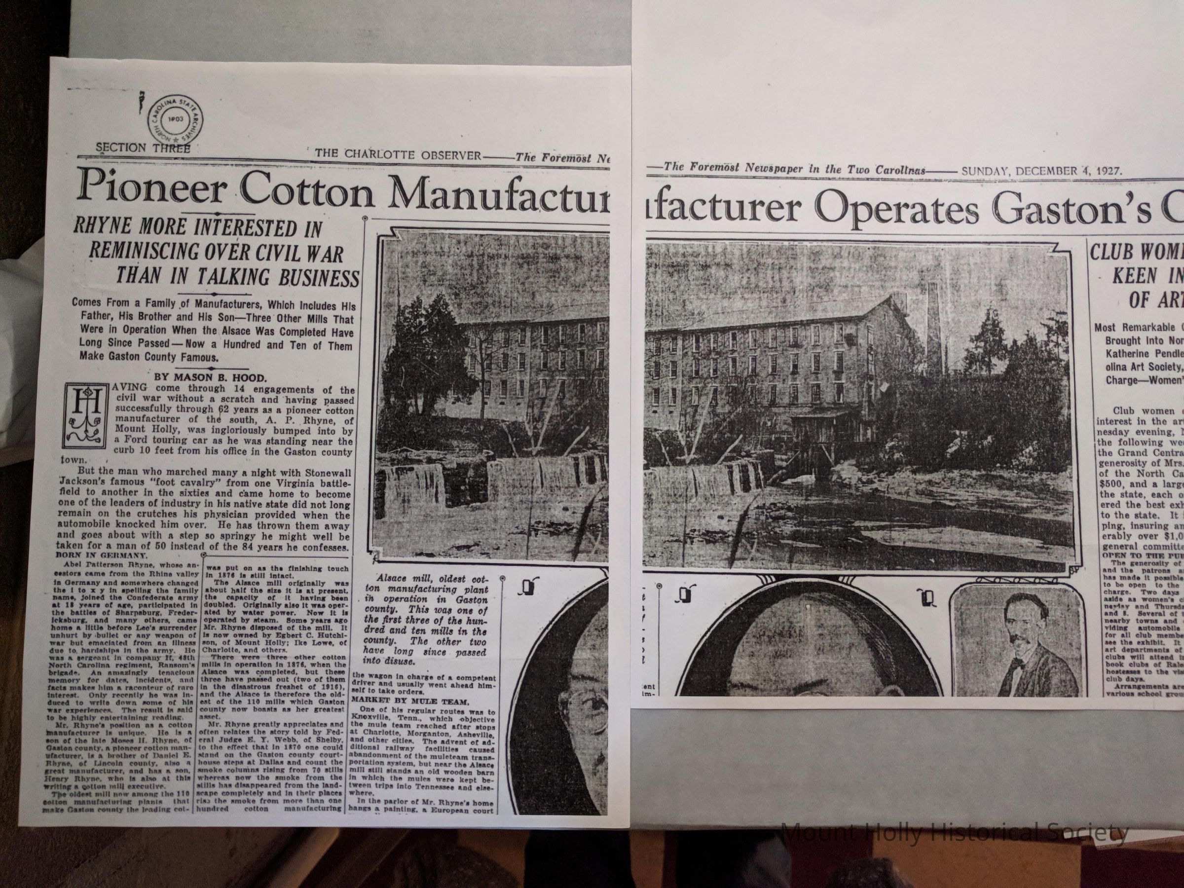 Newspaper - Charlotte Observer (Copy) AP Rhyne and Alsace Mill