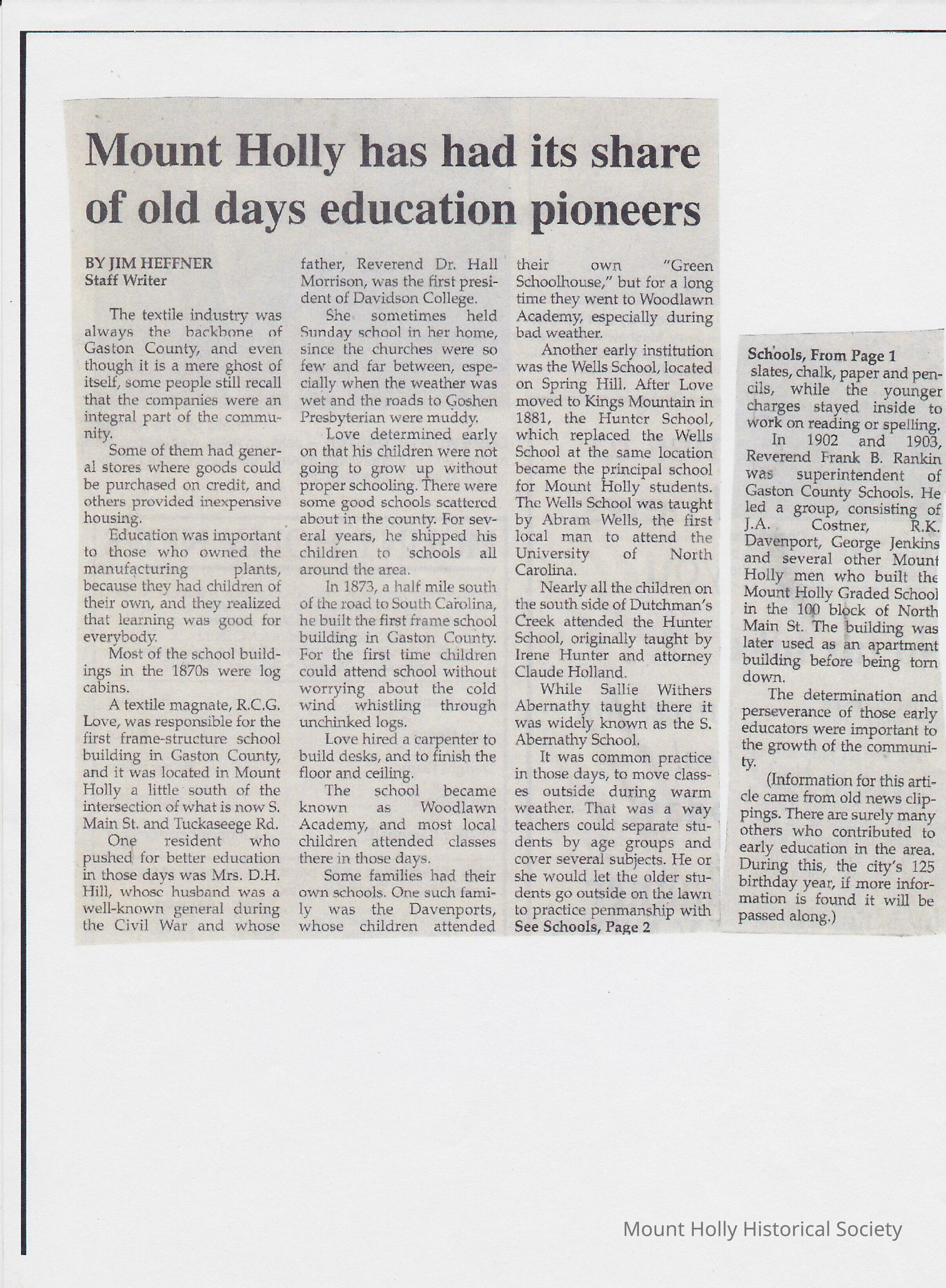 Copy - Newspaper Clipping regarding Mount Holly Schools