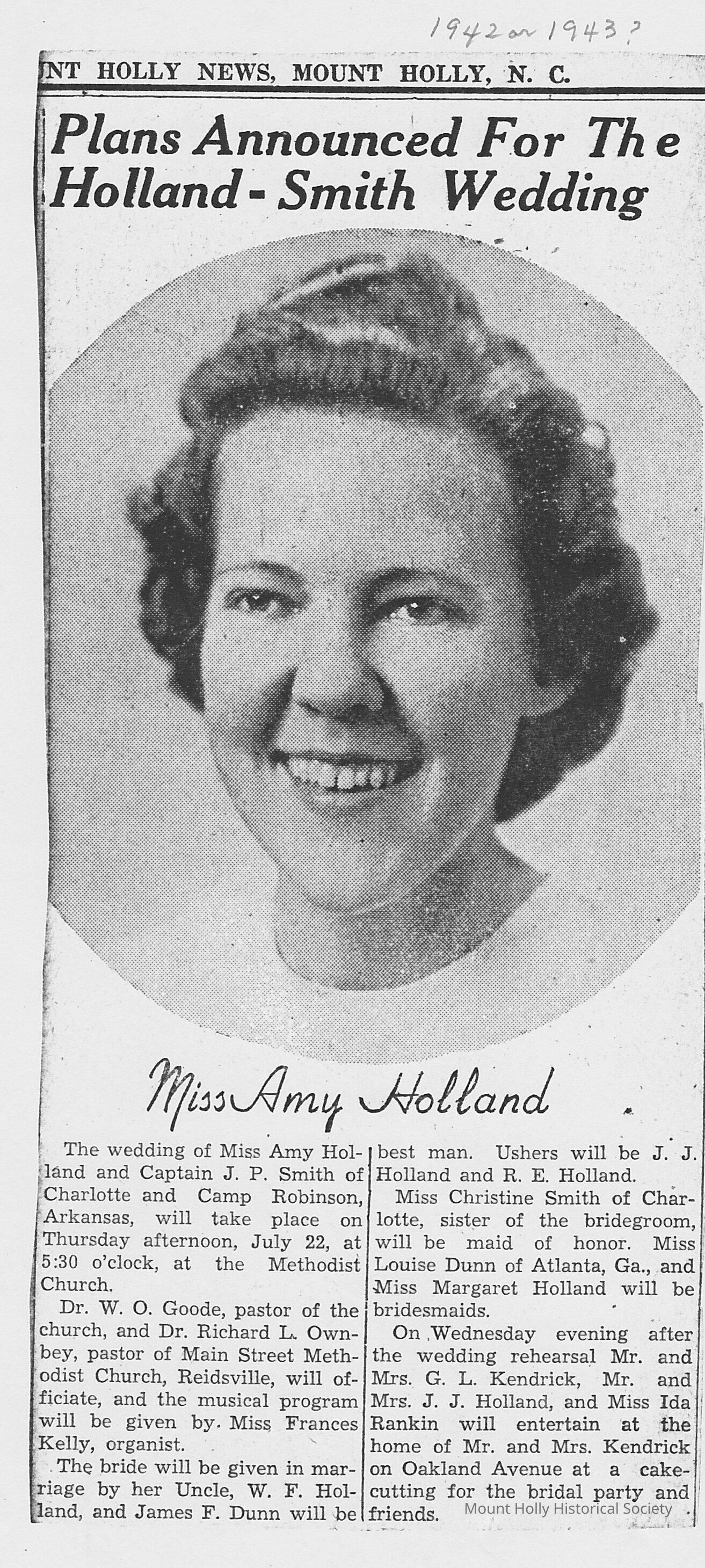 Mount Holly News (Copy) - Wedding Announcement of Amy Holland and Captain JP Smith