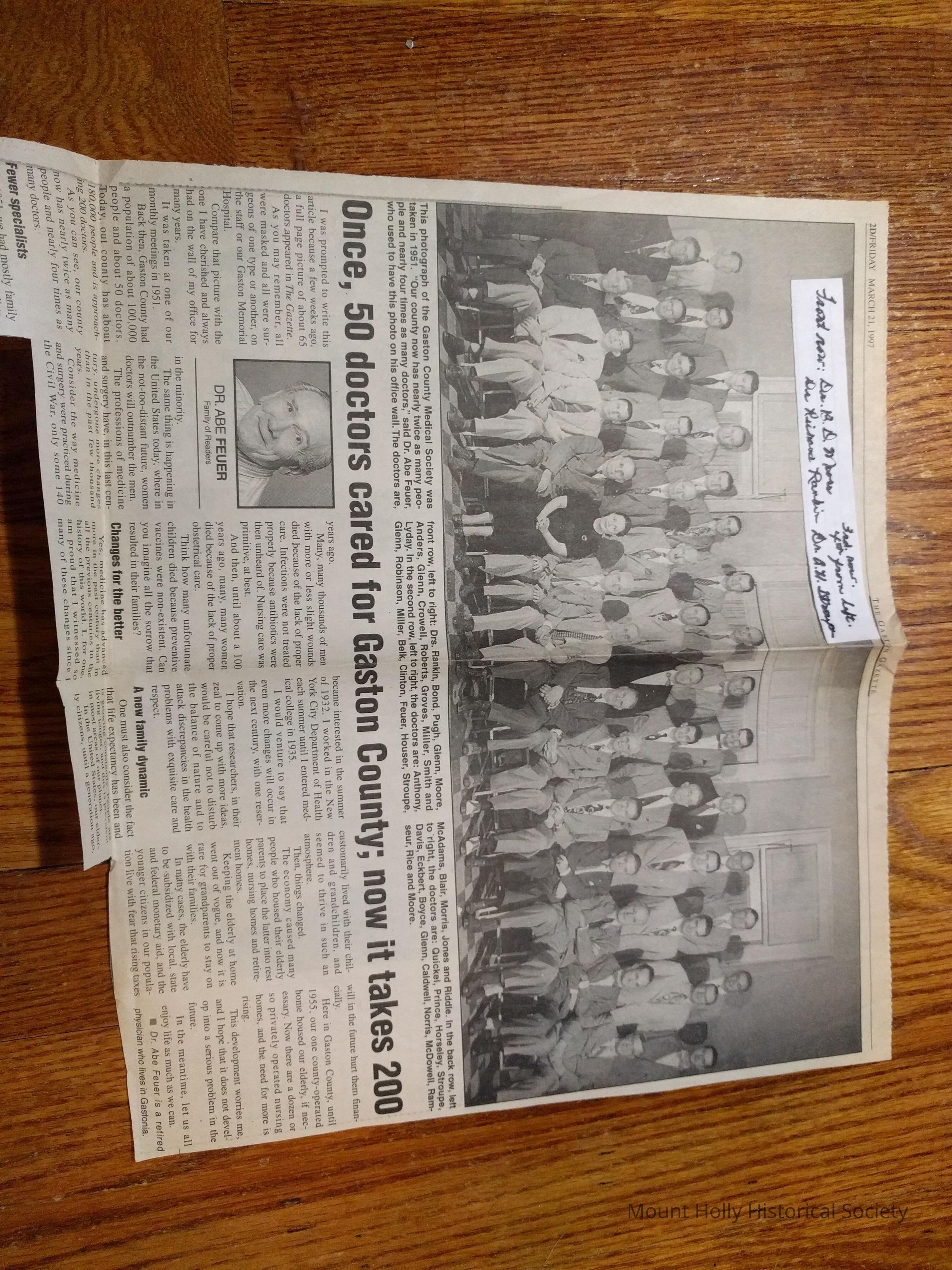 Gaston Gazette - 50 Doctors of Gaston County, Front Row - Dr. BD Moore, Dr. Richard Rankin, 3rd Row 4th from left Dr. AU Stroupe