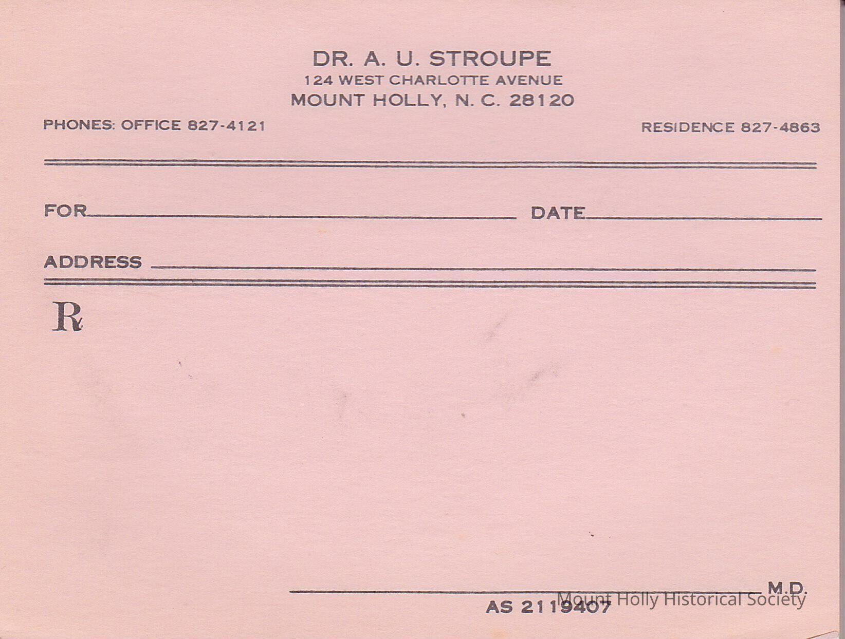 Prescription Notepad for Dr. AU Stroupe