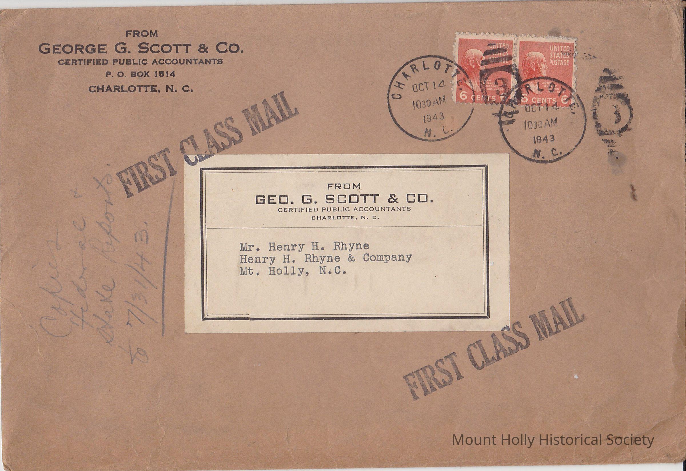 Envelope from Geo. G. Scott and Co. to Henry H Rhyne
