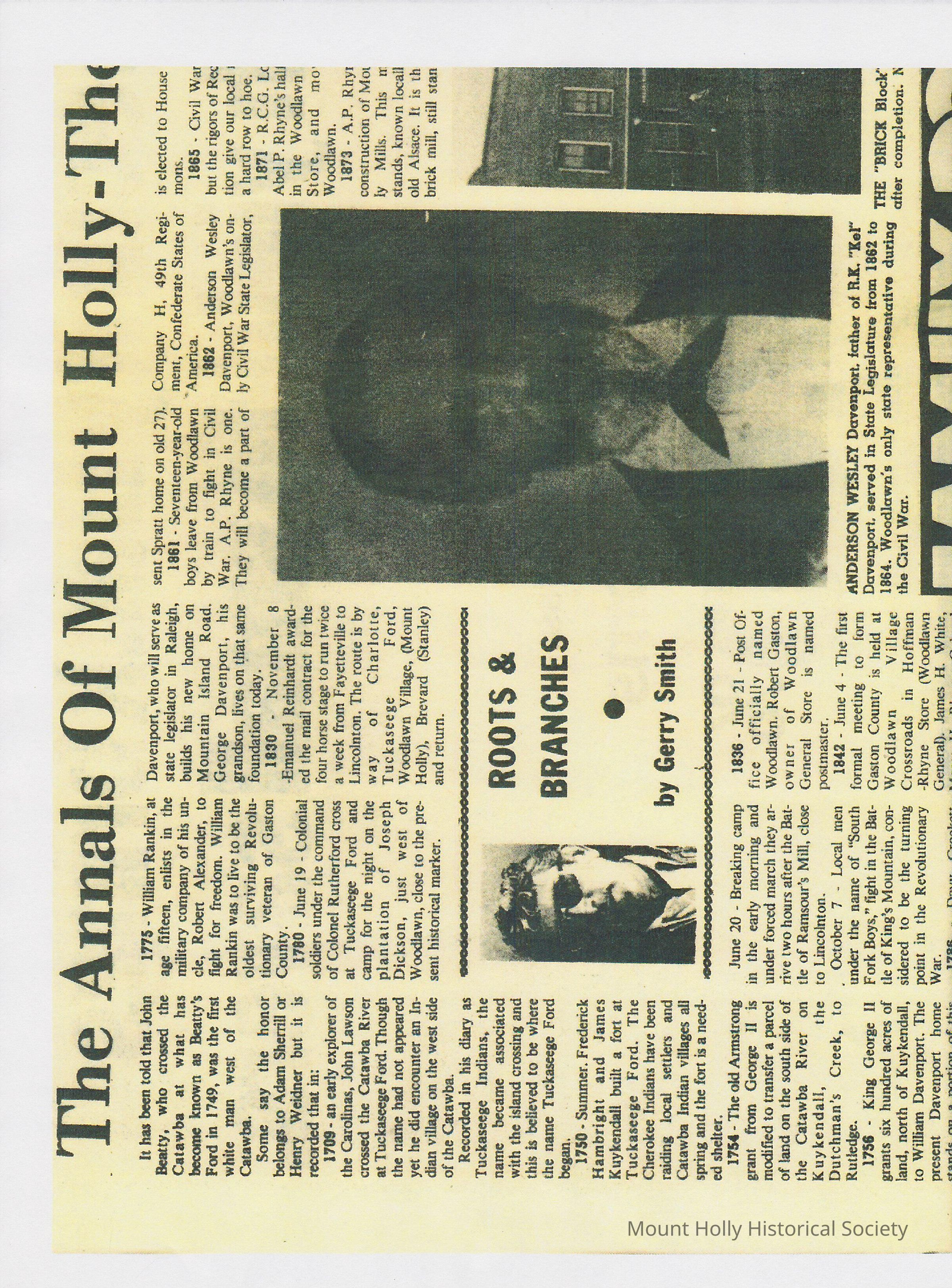 The Belmont Banner - Mount Holly News "The Annals of Mount Holly - The Early Years" (Copy and Original)