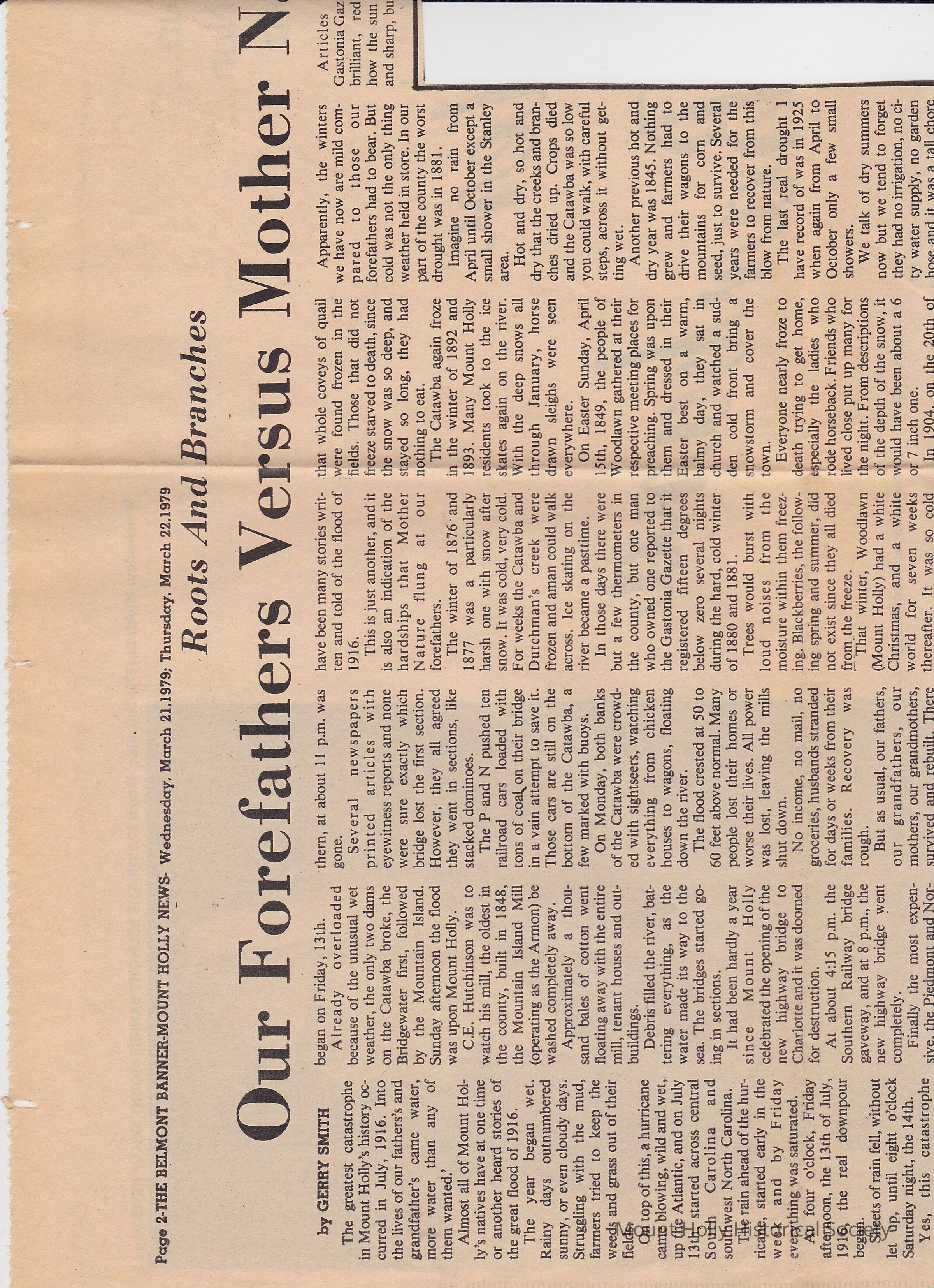 Mount Holly - Belmont Banner News - Article about the 1916 Flood