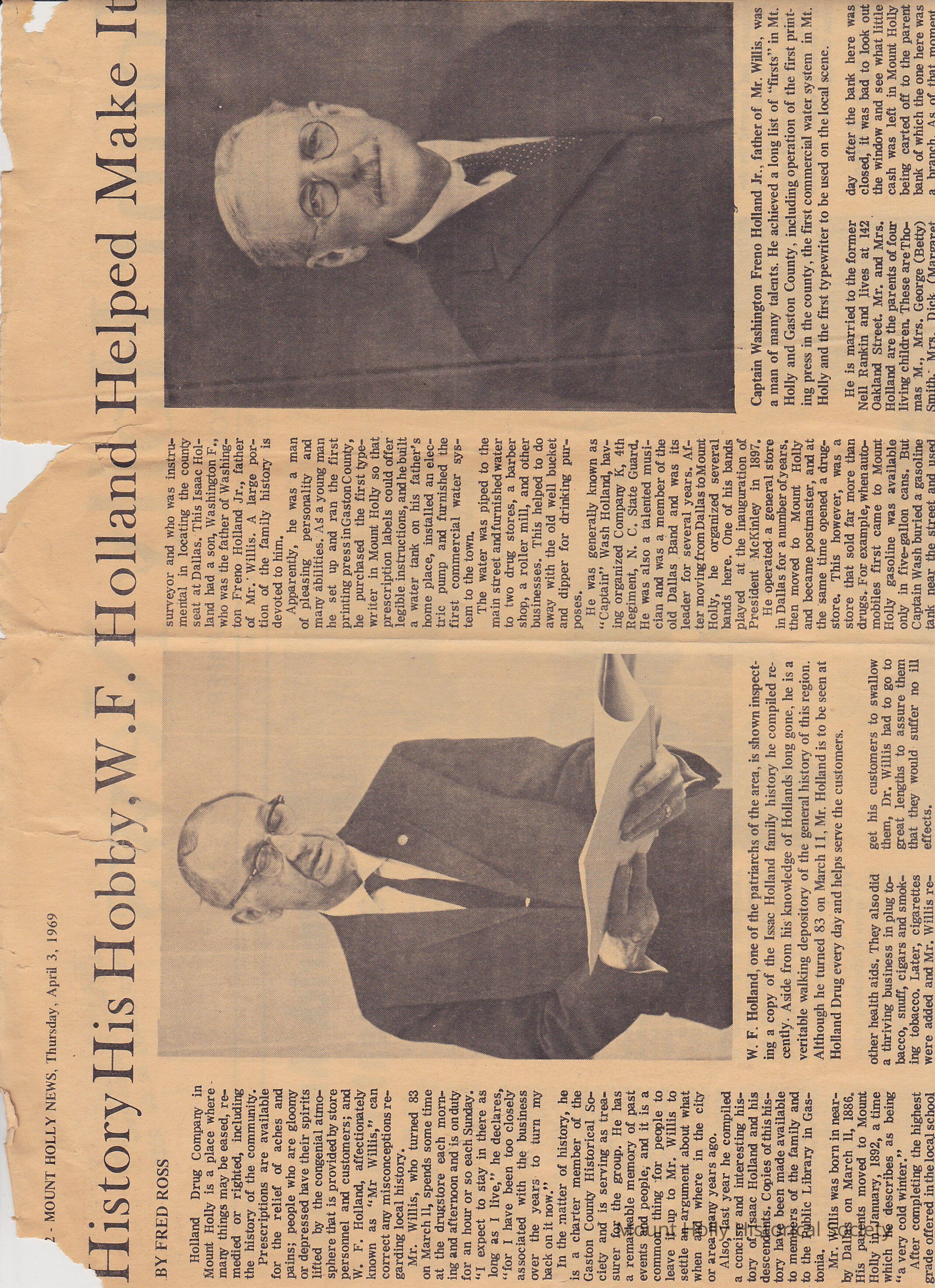 Mount Holly News - Bio of WF Holland