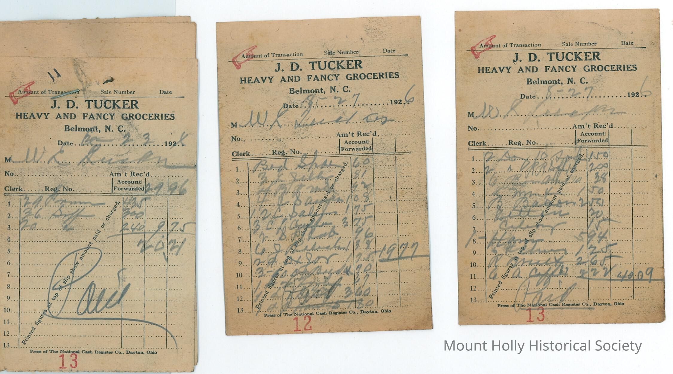 Numerous receipts (only three scanned) from J.D. Tucker in Belmont to W.L. Tucker for various groceries