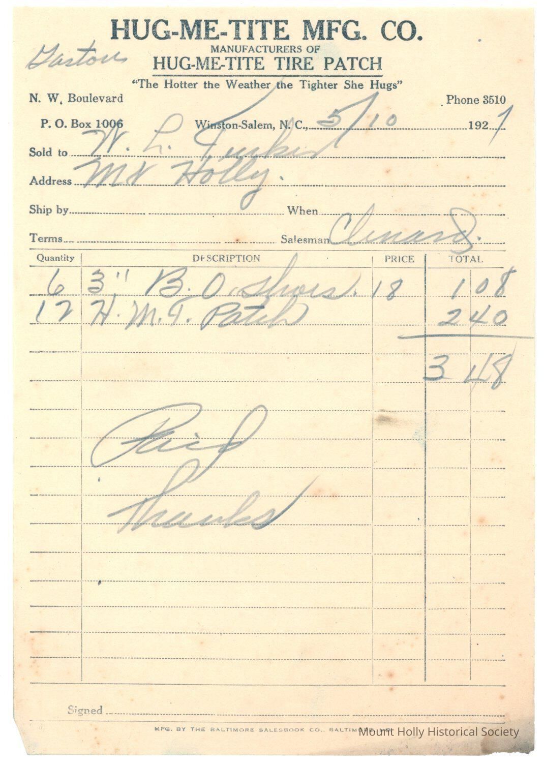Invoice from Hug-Me-Tite Manufacturing Co. to W.L. Tucker for goods