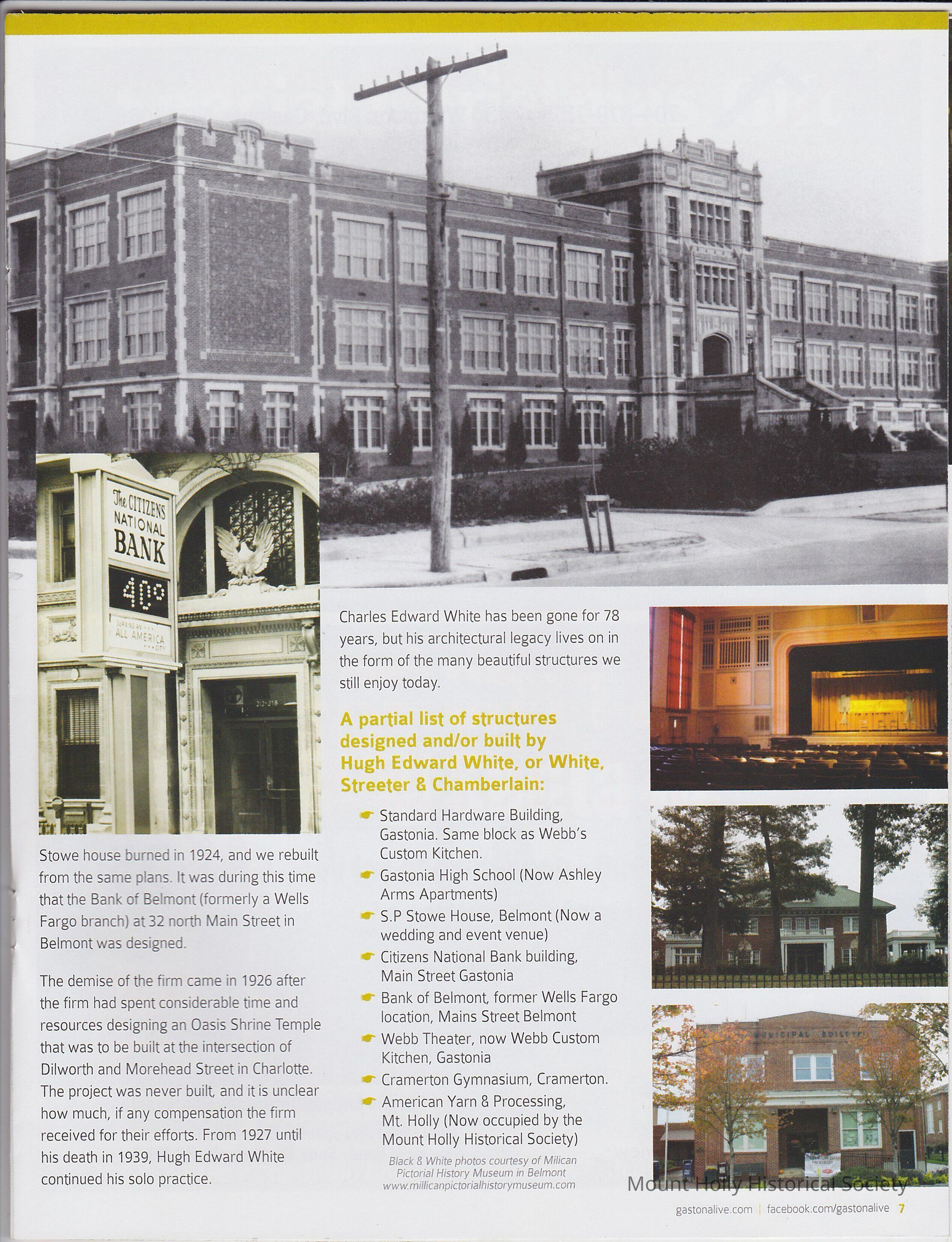 Charles Edward White - Architectural Article from Gaston Alive regarding Mount Holly Historical Society Municipal Building